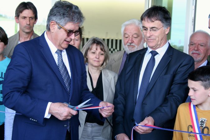 Georges Meric, président du conseil départemental et Patrick Lemasle, député maire inaugurent l’école de Motesquieu