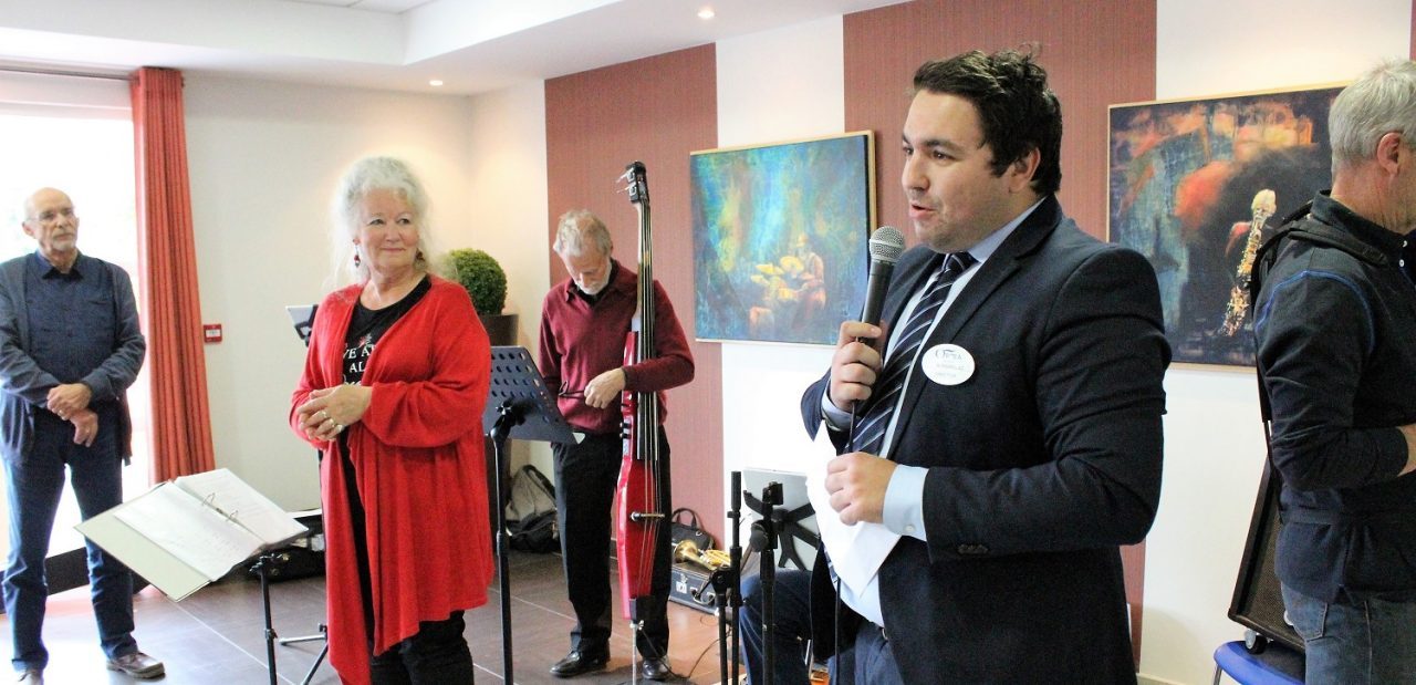 Lors du festival Jazz en Comminges, l’EHPAD Athéna-ORPEA de Villeneuve en partenariat avec l’association CLAP qui gère le festival, a bénéficié d’un concert. Un public très nombreux était venu écouter cette formation composée de musiciens américains, anglais ou hollandais installés dans le Comminges. Il faut dire que cette résidence a le sens de l’organisation et de la réception (leurs cocktails ainsi que leurs petits fours préparés par les cuisines de la résidence sont fameux). Edith Wieringa, Jazz Cambo, a enchanté les résidents. Certains se sont même mis à swinguer sur leur chaise et d’autres se sont levés pour danser. Un plaisir qui se lisait sur tous les visages, des airs de jazz traditionnels qui ont mis une ambiance joviale.