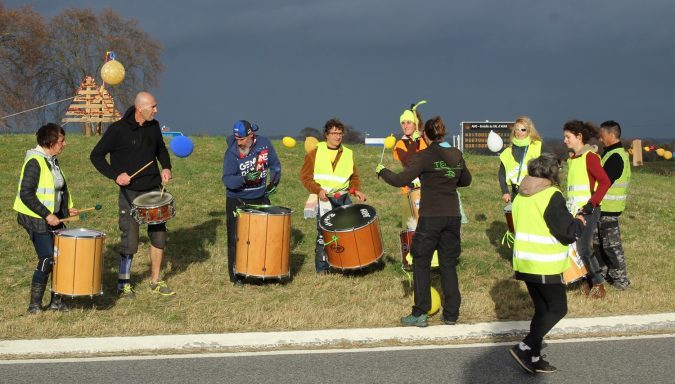Accueil » Les gilets jaunes toujours mobilisés même le dimanche » 20181209-Et le dimanche s’est au rythmes des batucadas que les gilets jaunes font ralentir les automobilistes