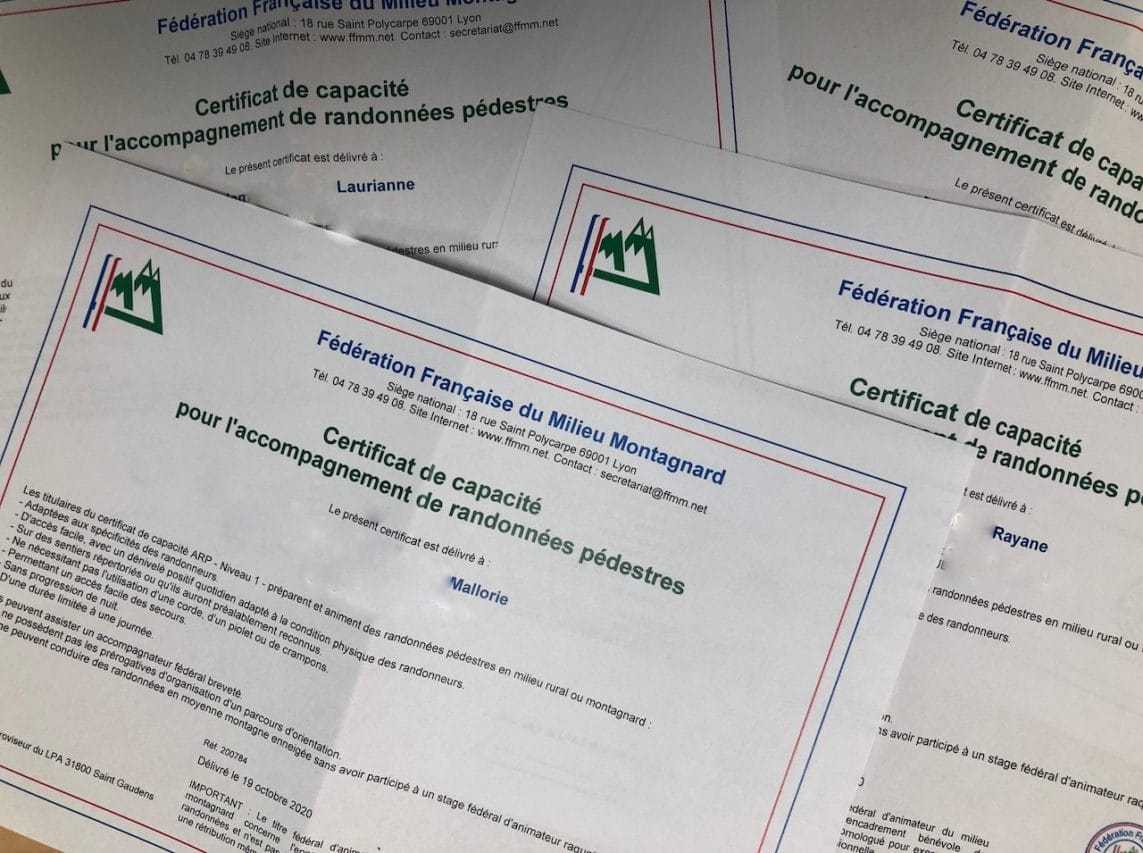 Tous les élèves ayant passé l’attestation d’accompagnateur de randonnée pédestre délivrée par la FFMM ont réussi l’épreuve!