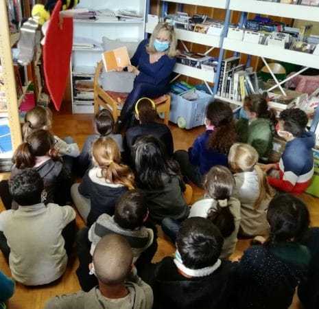 Josiane Crouzet, responsable de la médiathèque communale, fait découvrir et aimer la lecture aux élèves du RPI.