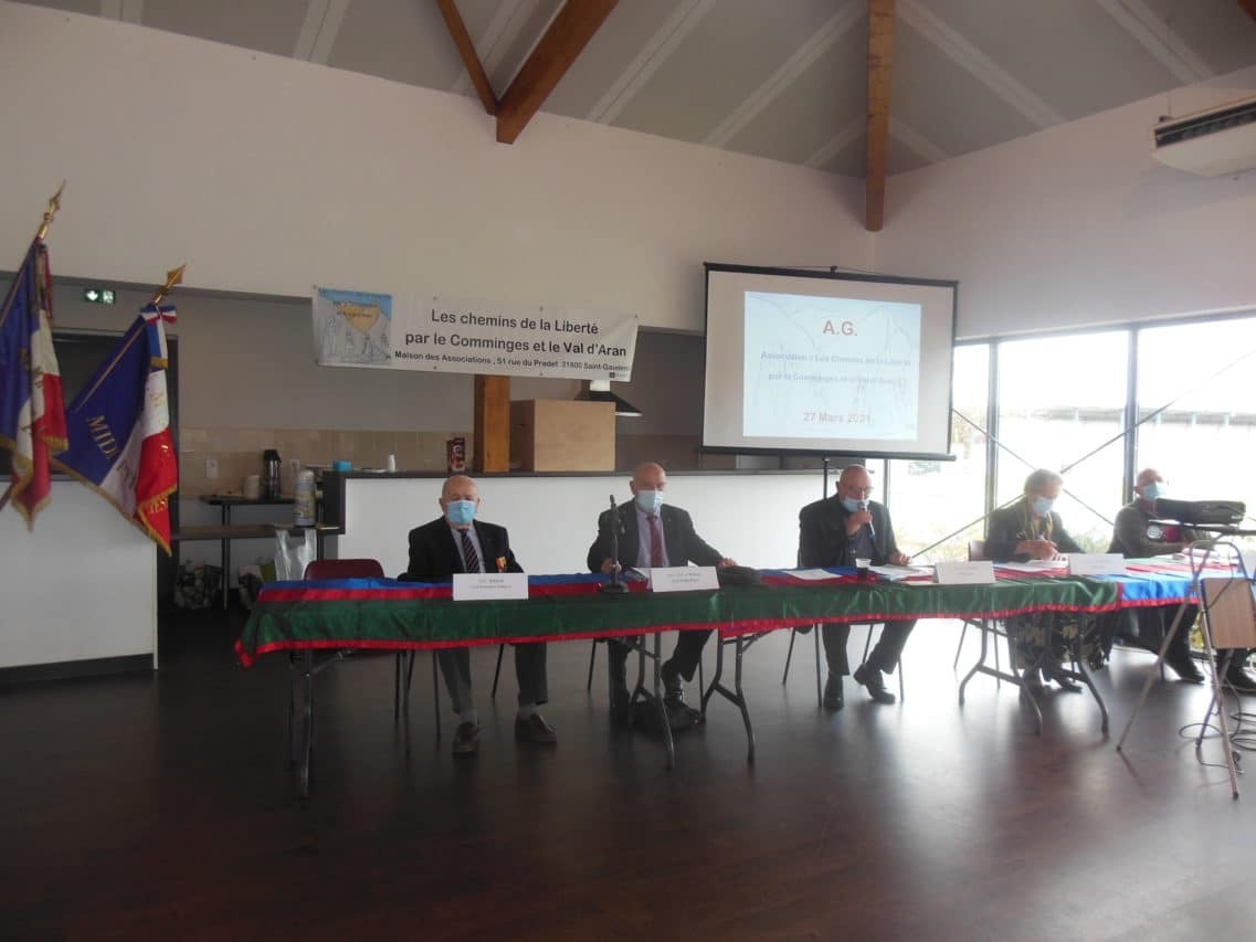 Ce samedi 27 mars s’est tenue à la maison des sports du Stade Jules Ribet l’assemblée générale des « chemins de la liberté par le Comminges et le Val d’Aran en présence de Didier Lacouzatte, représentant le Maire Jean-Yves Duclos, Cécile Laurenties, conseillère départementale et le Lieutenant Guillemin de la gendarmerie motorisée.