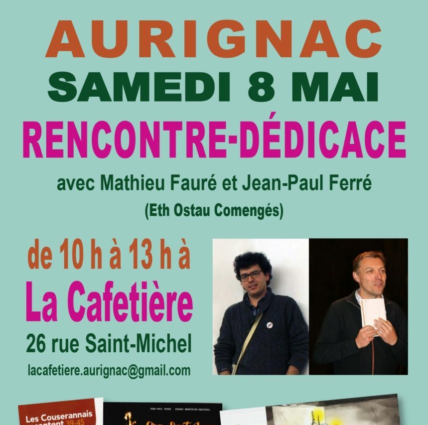 Samedi 8 mai, de 10h à 13h, ils seront présents à la Cafetière pour une rencontre-dédicace en occitan et en français.