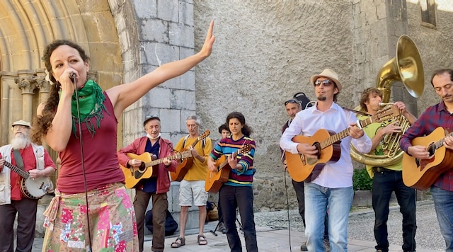 A 11 heures précises, comme par enchantement et en quelques minutes une foule immense se précipite sur la place de l’église devenue l’instant d’un instant le parvis de Notre Dame de Paris. Les troubadours et le peuple occupent ce lieu symbolique. Les premières notes de musique sortent de nombreux instruments de musique qui se sont donnés rendez-vous pour consacrer la culture. On entre dans le sacré fut-il laïque. Il y a là des guitares, piano, tuba, percussions, flûtes, accordéons…