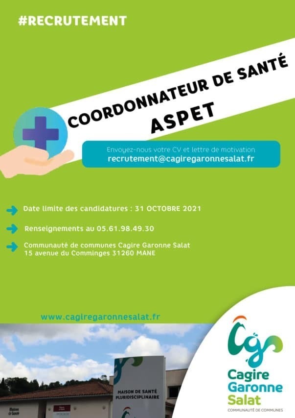 Le centre de santé d’Aspet, au sein de la maison de santé, est à la recherche de son collaborateur de santé H/F, comprenant 5 médecins généralistes, 2 secrétaires médicales et le personnel d’entretien.