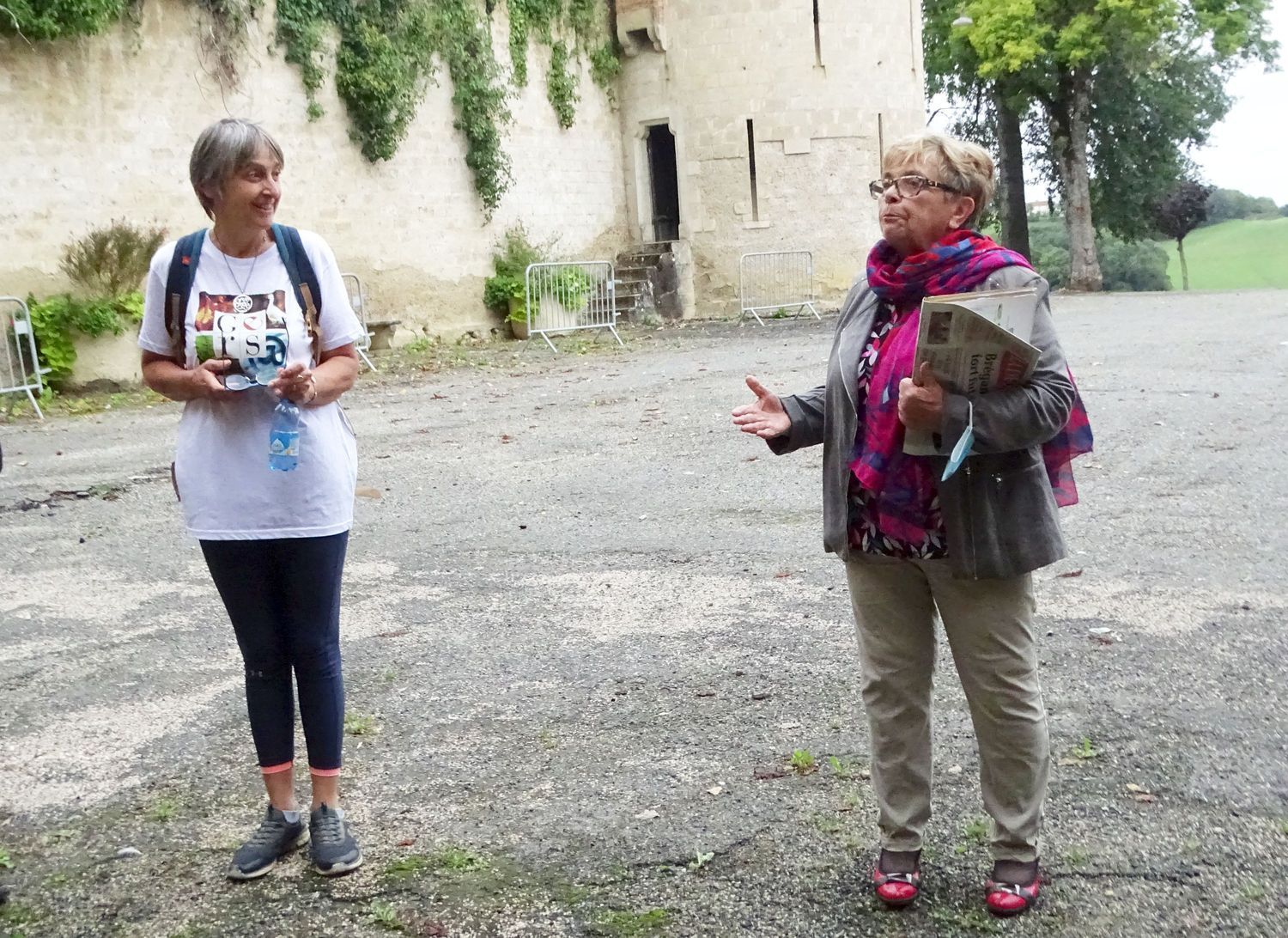 Accueil » Saint-Blancard (32) : L’histoire du château des Gonteau-Biron contée aux randonneurs » Marie Germaine Barthe (à dr) a raconté avec verve l’histoire du château (à g Christine Huppert, maire du village)