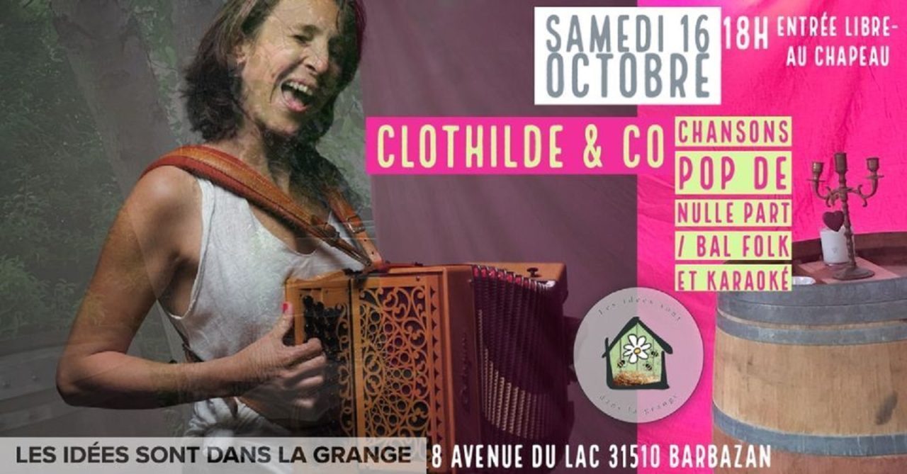 Samedi 16 octobre à partir de 18h, venez chanter et déguster des produits locaux à la Grange, avec Clotilde Ricard, accompagnée par Patrice Emportes, guitariste et peut-être d’autres musiciens.