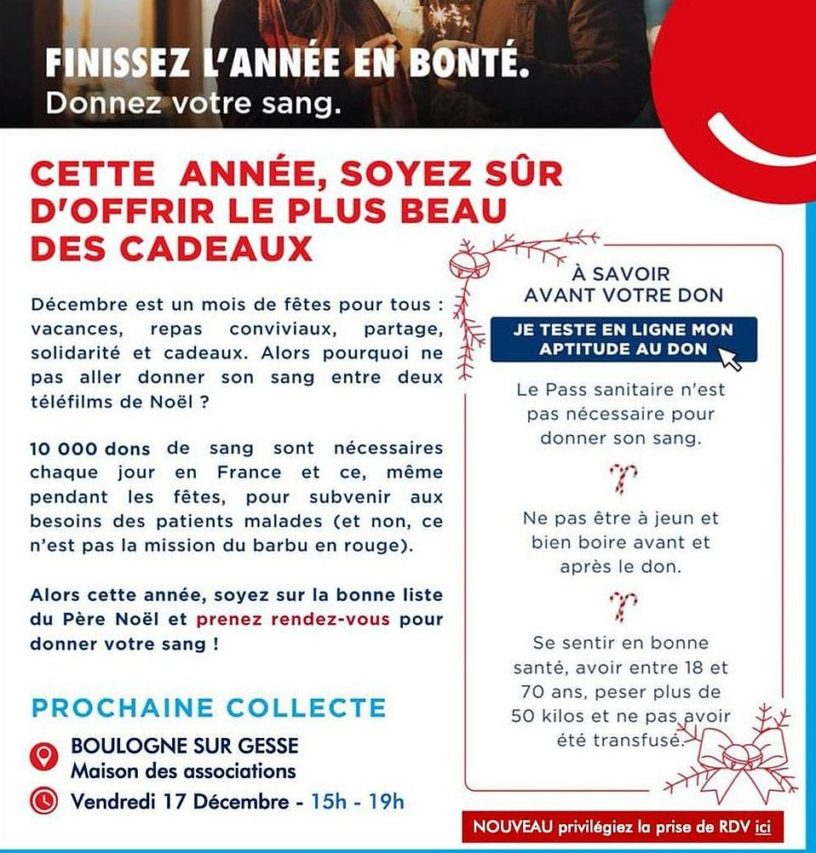 Le don du sang est un acte citoyen solidaire de première importance. Il ne faut pas baisser la garde. L’Établissement Français du sang Occitanie lance un message en vue de la prochaine collecte du 17 décembre sur la commune de Boulogne-sur-Gesse.