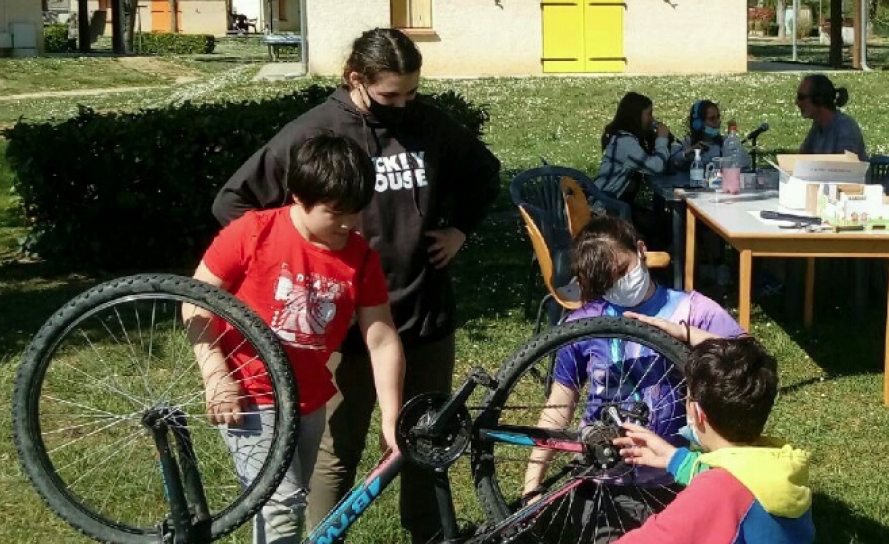 Expérience de réparation de vélo à l’Atelier BtB de la MJC de l’Isle en Dodon, au printemps dernier, lors d’un stage de sensibilisation à l’animation.
