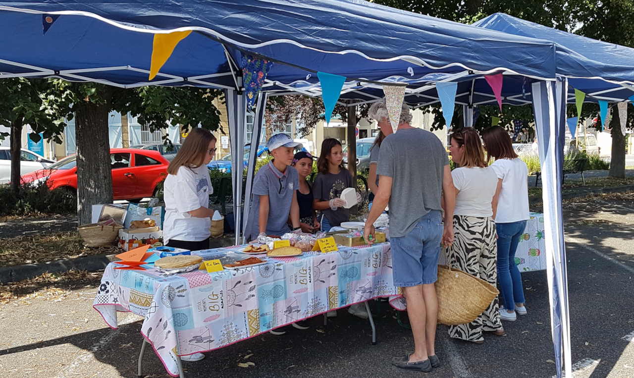 Ces derniers dimanches dont ne sait s’ils sont avant ou après la Pentecôte, on a pu constater des choses inhabituelles dans le centre bourg. Les personnes qui fréquentent le marché de Rieux ont pu apercevoir un stand un peu particulier. Des commerçants quelque peu particuliers avaient installé leur officine pour y vendre des produits dont on dit qu’ils étaient d’un circuit court (qu’es aquo ?). À y approcher de plus près il s’agissait de pâtisseries, crêpes ou autres gâteries en tous genres confectionnées officiellement par les jeunes mais de source sûre il se peut que certaines l’aient été, dans le secret des alcôves, par des parents attentionnés dits participatifs ou quelque peu protecteurs.