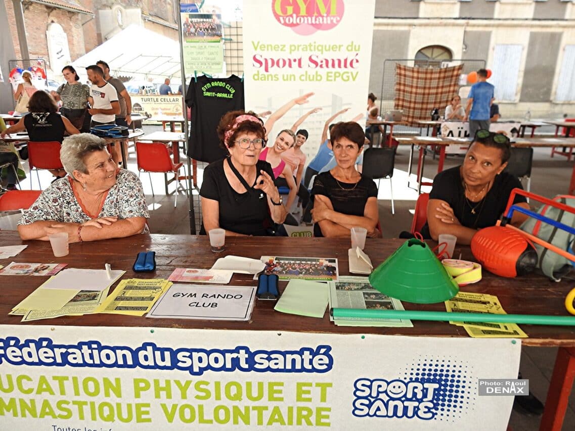 Gym Rando Club de Saint – Araille était présente sous la halle ensoleillée pour accueillir les visiteurs et présenter ses activités de sport en salle (le jeudi de 20 h.45 à 21 h.45) et les randonnées à la fraîche autant d’échappées belles en milieu naturel diversifié associant la découverte, le plaisir et la rencontre conviviale et gourmande. Autour de Michèle Laguens , fil rouge du développement de la gym à Saint-Araille depuis 31 ans et de quelques membres du conseil d’administration on pouvait remarquer le label qualité club EPGV ( Éducation Physique Gymnastique Volontaire ) , récompense nationale et véritable étalon d’un fonctionnement régulier, démocratique et dynamique.