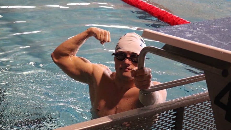 Ce dernier dimanche, Cédric Matilla, le nageur des Marsouins disputait chez lui, dans sa piscine de Saint-Gaudens les épreuves qualificatives aux championnats de France qui se dérouleront à Vichy du 13 au 16 avril. Pas de pression particulière, mais une motivation sans faille pour réussir les minimas imposés et se qualifier sur le 100 m nage libre. Avant le départ, il est déjà dans sa course avec une répétition de gestes qu’il connaît par cœur. Son coach, Fabien Finard est particulièrement confiant. Grâce à un départ sur lequel il a beaucoup progressé, il prend vite la mesure de sa tâche.