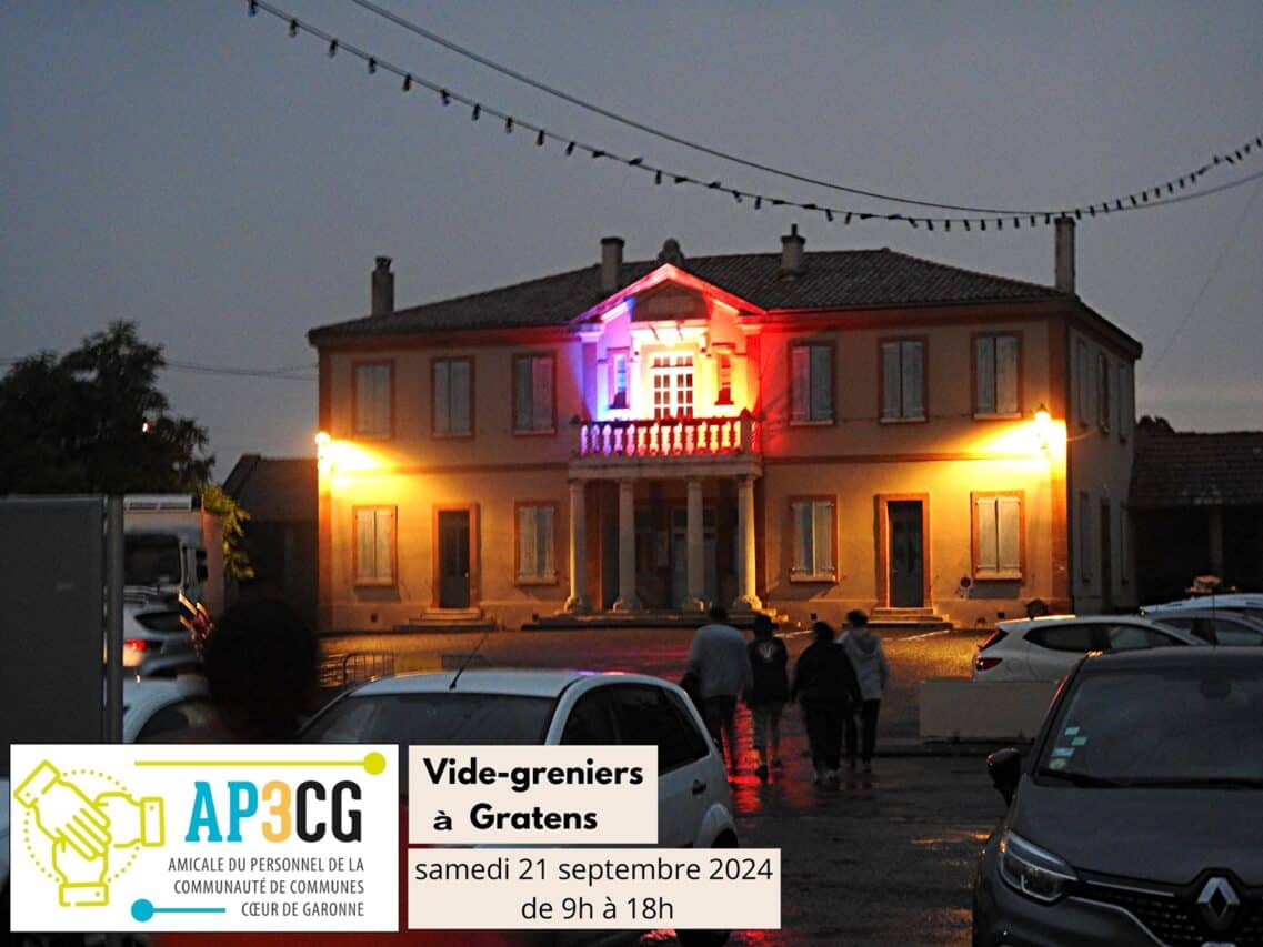 L’Amicale du personnel de la Communauté de communes Cœur de Garonne (AP3CG) organise son premier vide-greniers dans la charmante commune de Gratens (31430) le samedi 21 septembre 2024 de 9h à 18h.