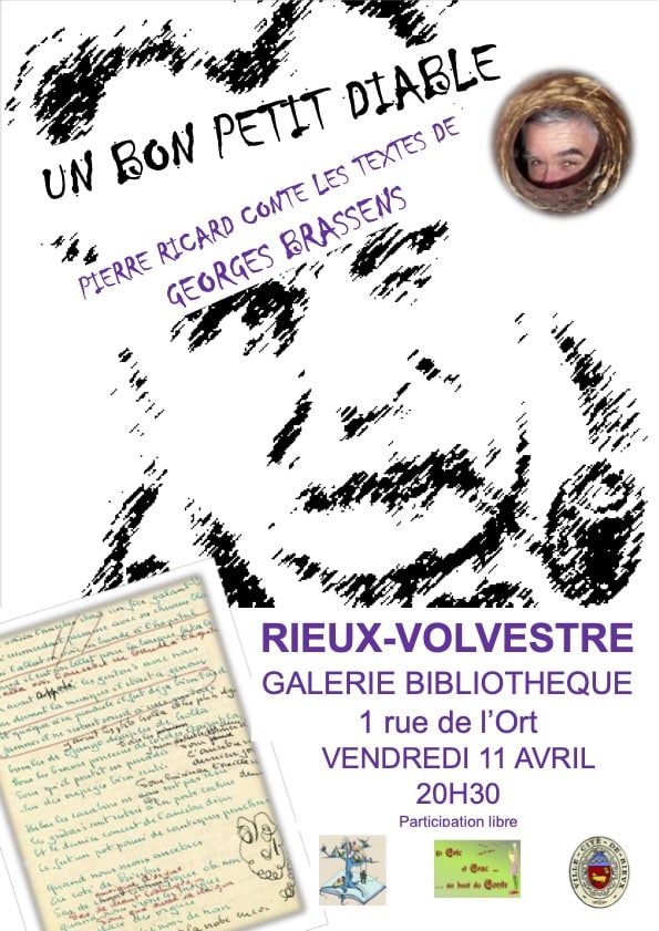 Le conteur Pierre Ricard vous propose un spectacle intitulé « un bon petit diable » dédié aux textes de Georges Brassens pour redécouvrir une partie de son œuvre sous la forme contée.