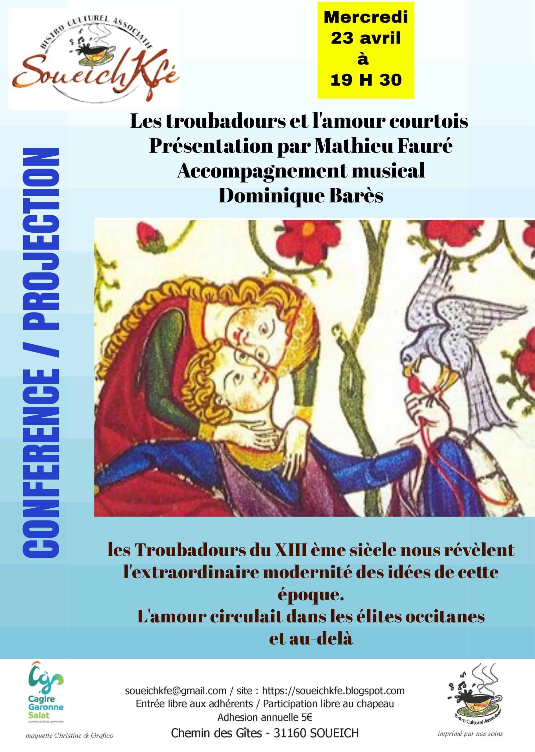 Mathieu Fauré exposera plaisamment les tenants de cette nouvelle culture profane dans le Moyen-âge occitan et européen qui s’est affranchie de la tutelle de l’église, de par la puissance évocatrice du sentiment amoureux comme celui de la dissidence avec l’Eglise Catholique.