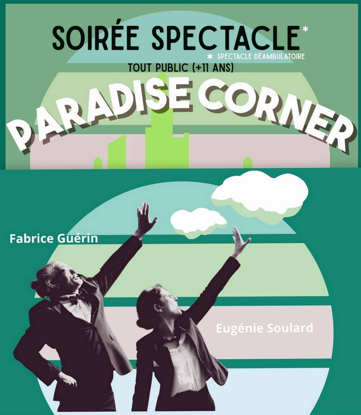 Les comédiens Eugénie Soulard et Fabrice Guérin vous entraîneront dans leur projet immobilier « Paradise Corner », une comédie sur notre rapport à la Nature qui fini par un rêve : le leur, le nôtre !