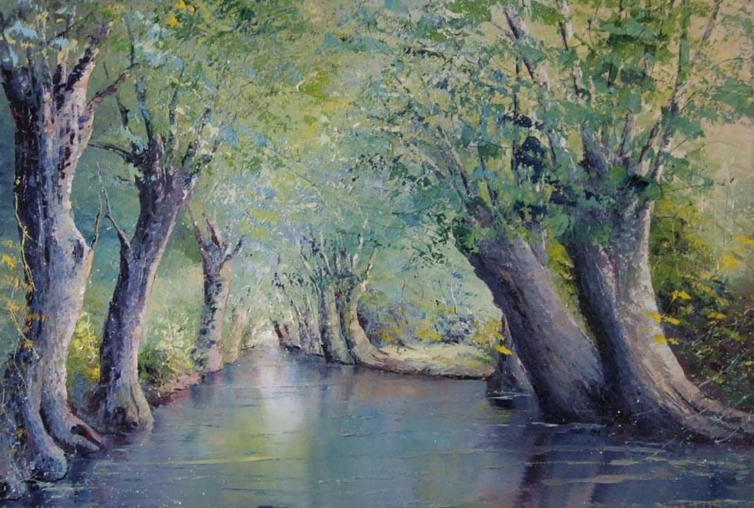 Ainsi son travail au couteau évolue vers des techniques plus personnelles, avec application de couches successives et fines, dont la superposition, à la manière d’un glacis, trouve son application dans la représentation de l’eau.