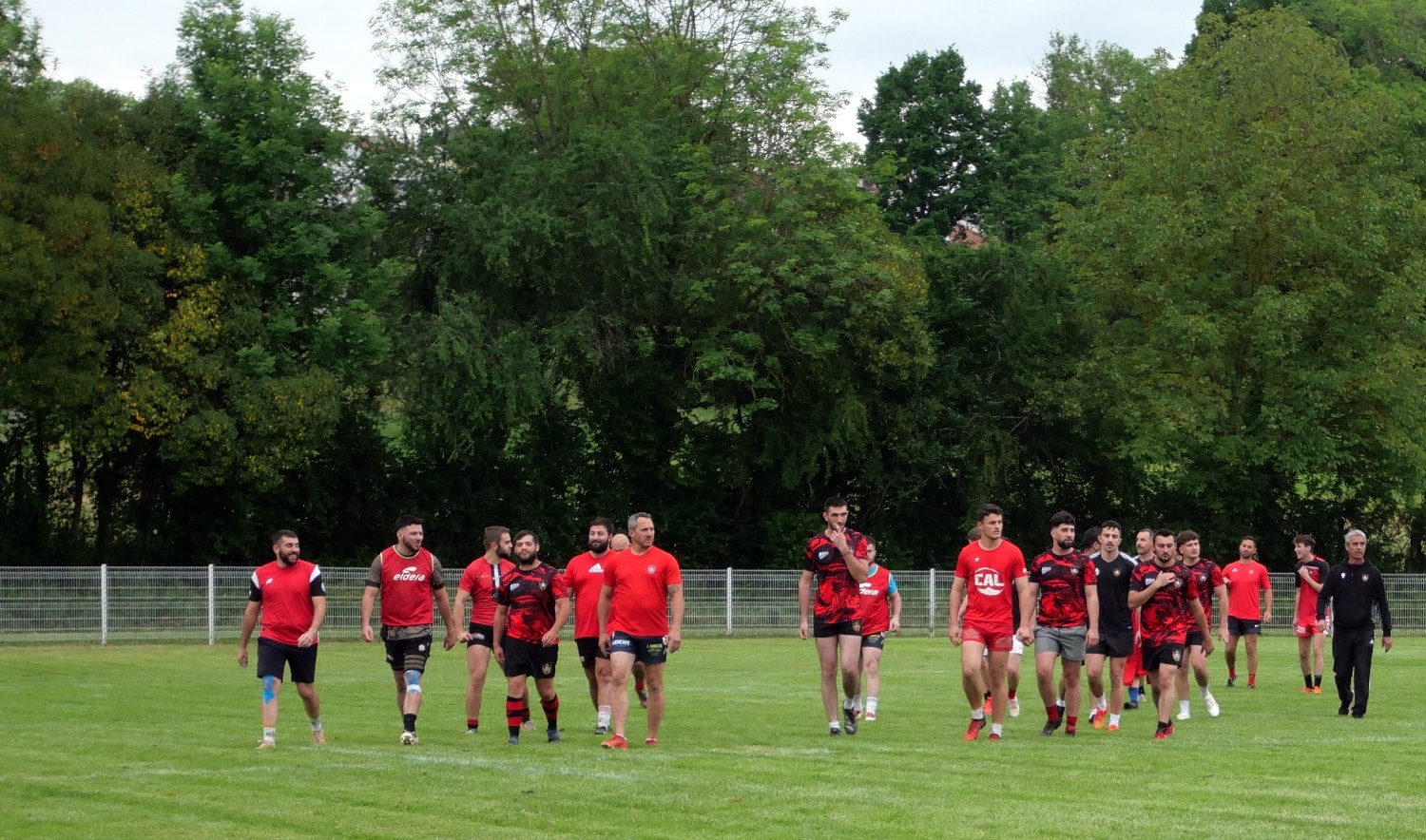 Ce jeudi 8 mai, les joueurs et l’encadrement remettaient ça avant le match contre Mont de Marsan ce vendredi 9 mai. Les joueurs occupaient une partie du terrain, tandis que ceux de l’USMGP s’entraînaient sur l’autre moitié.