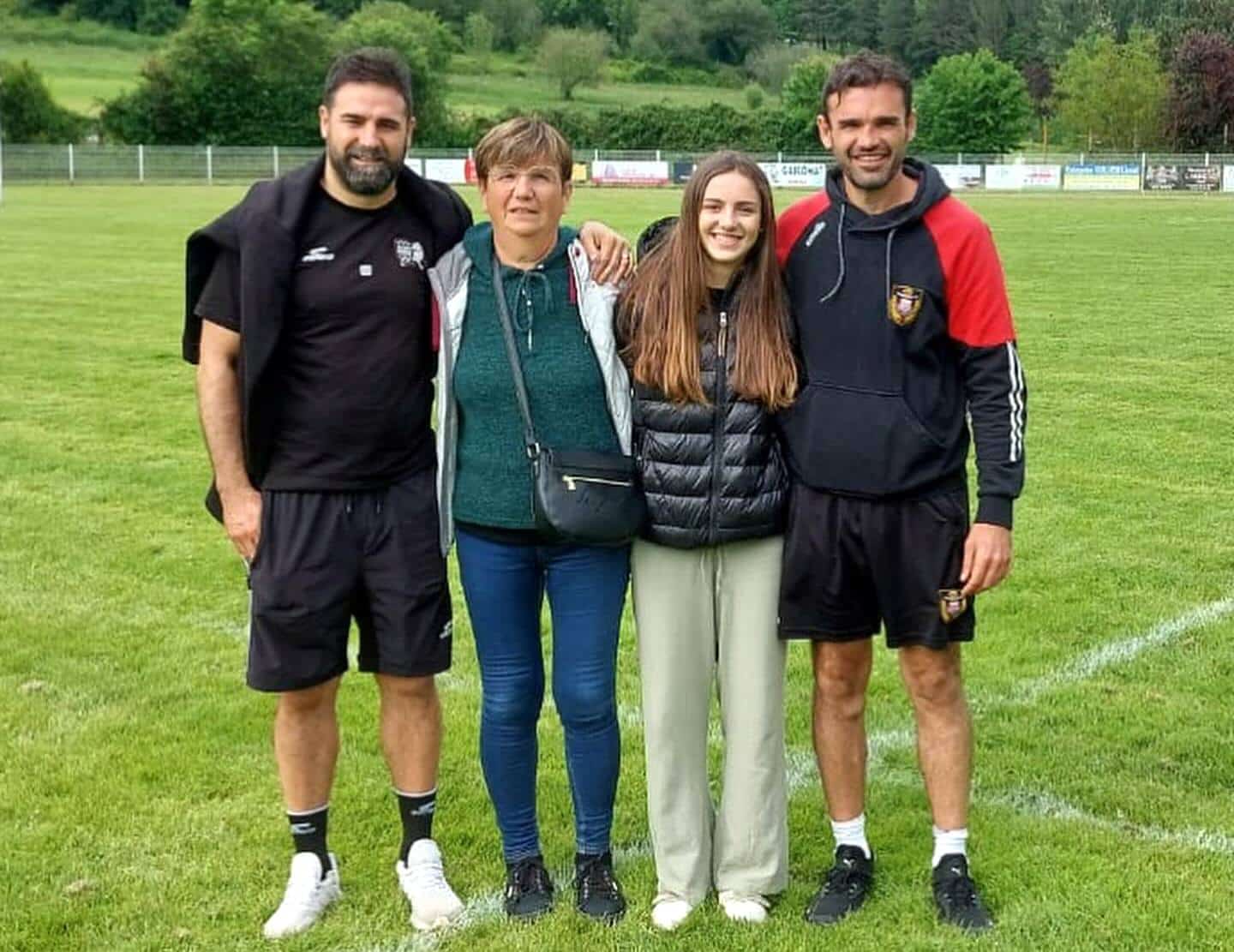 Le manager général du VRDR, Fabien Fortassin et son frère Florent, entraîneur de l’USMGP, avaient la surprise de voir arriver sur le terrain leur maman Marise, accompagnée d’Iris, la petite de Florent.