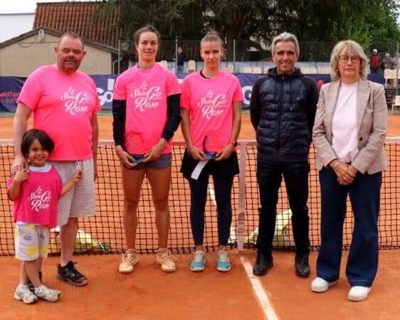 Entre Franck Daure, Jean-Yves Duclos et Claire Vougny, Loïs Boisson et Tatiana Prozorova solidaires de la Sein Go Rose.