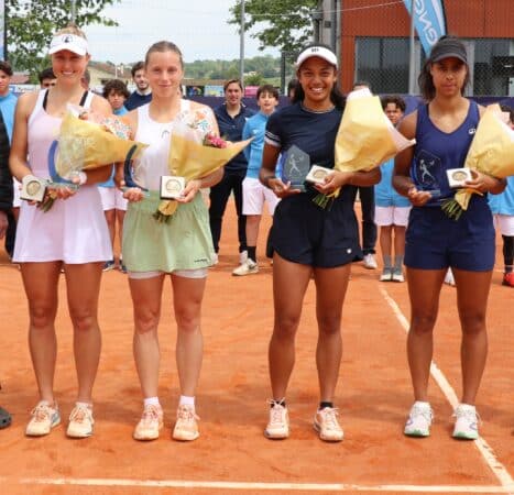 Gabriela Knutson et Anna Siskova, Émeline Dartron et Tiantsoa Rakotomanga, à l’issue de la finale du double.