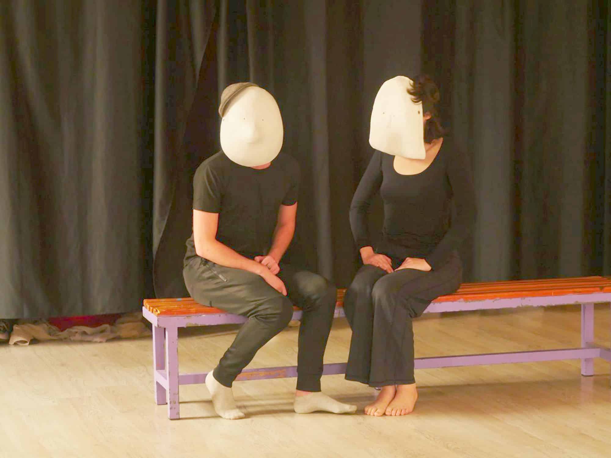 Contenu : Brève présentation sur l’histoire et l’origine des masques larvaires. Naissance de masque. Solo, duo et travail en groupe. Travail des contraintes physiques. Improvisations guidées solo et en groupe. Travail sur les gammes des émotions.Training/échauffement physique journalier. »