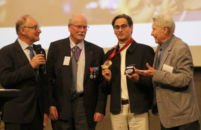 Sylvain Besançon (président ANMONM) avec le médaillé d’or paralympique Ugo Didier entouré de Jean-François Sautereau (ANMONM, président honoraire de l’Université Paul Sabatier) et Jean-Claude Dauriac (ANMONM).