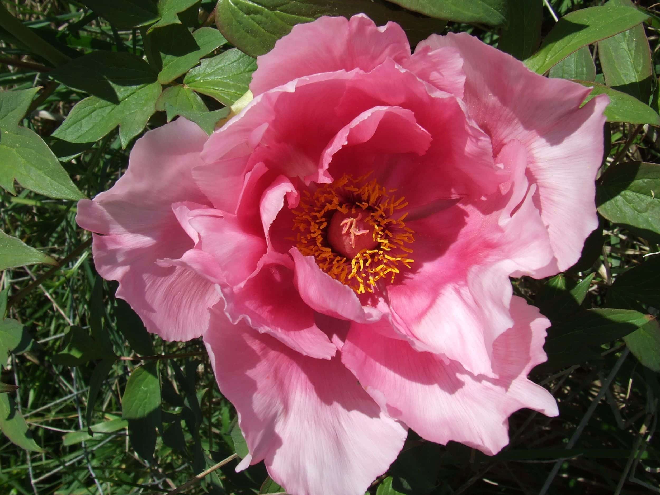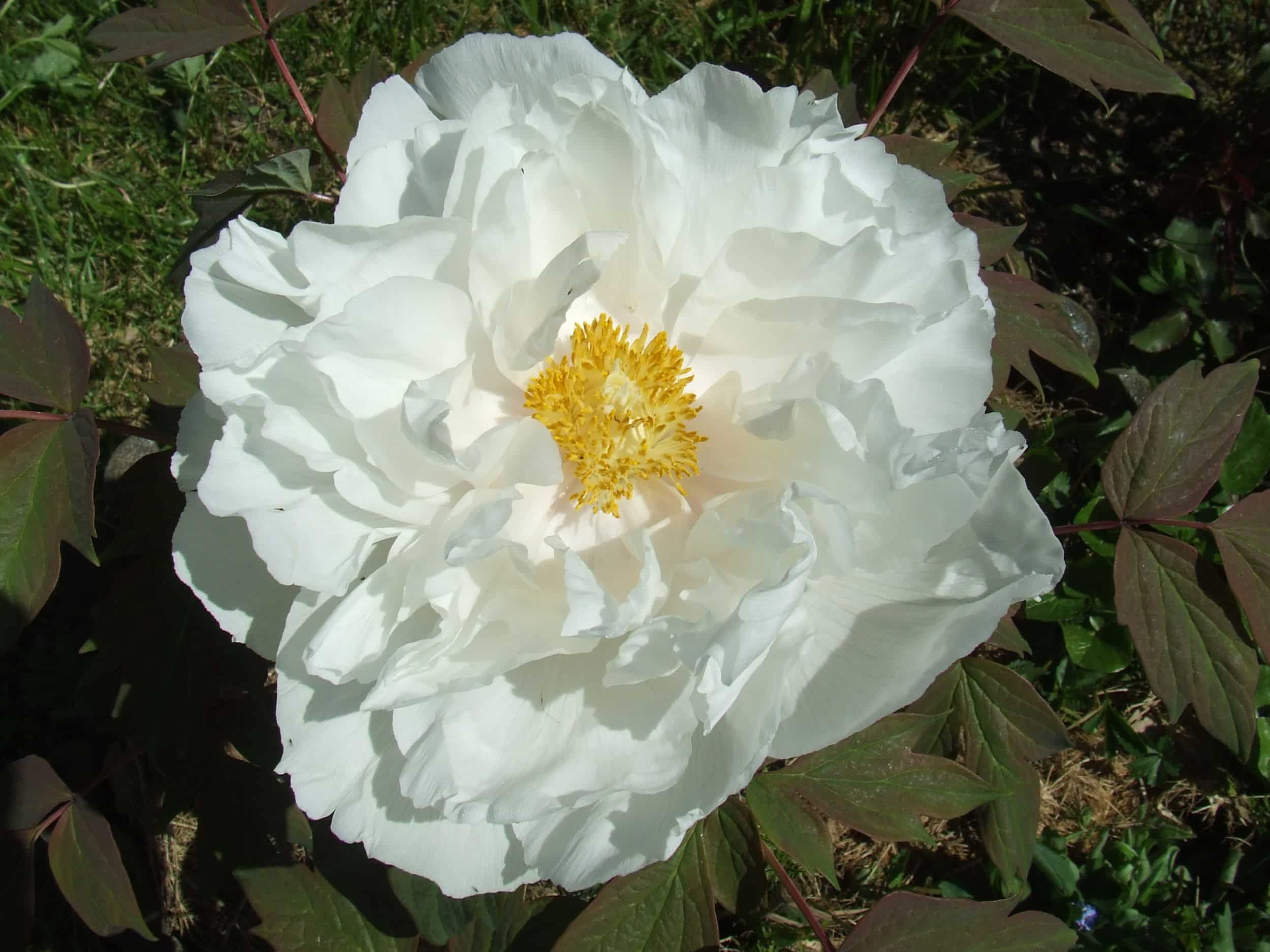 La pivoine arbustive, Paeonia suffruticosa, est née en Chine, où elle a été cultivée dès le 3ème siècle. Elle a été introduite en Europe seulement au XVIIIème siècle. Comme sa cousine herbacée, elle aussi a été utilisé en médecine traditionnelle. Ses fleurs énormes, de plus de 20 à 25 cm de diamètre selon les variétés, s’épanouissent en avril-mai. Comme son nom l’indique, l’arbustive fabrique un tronc et des branches.