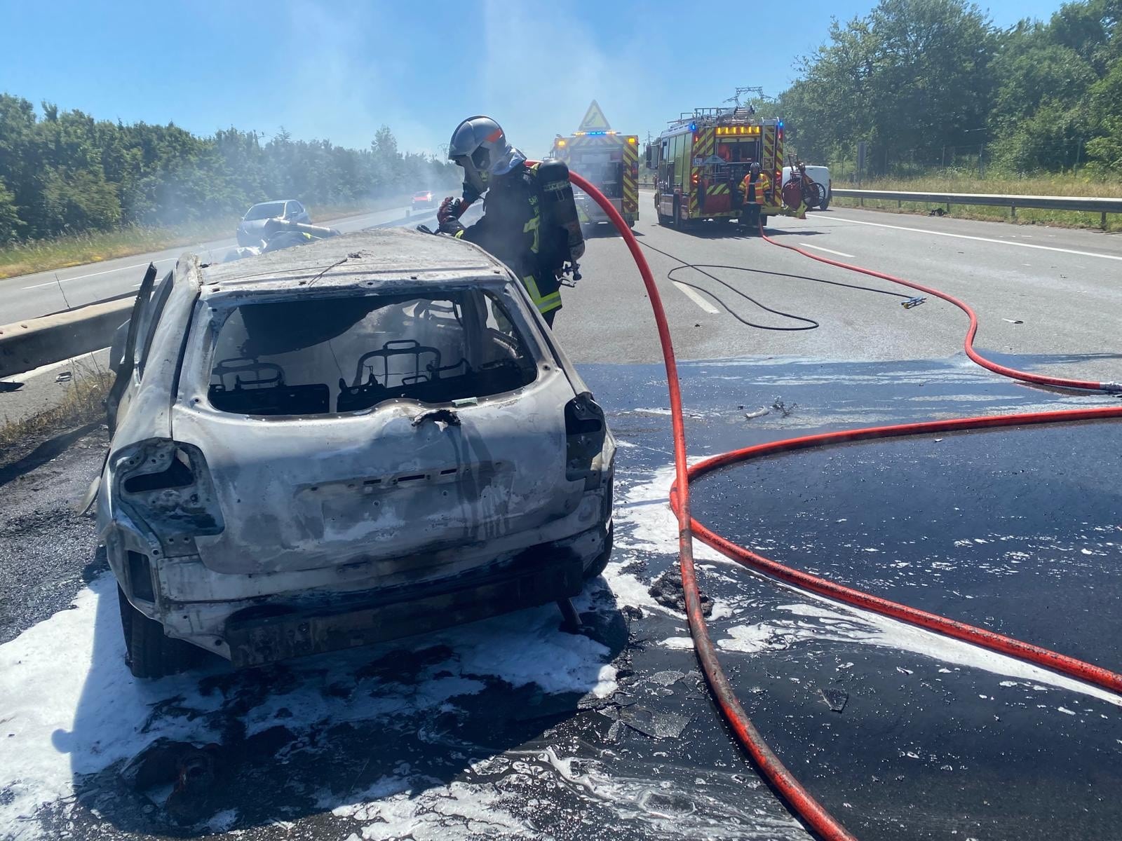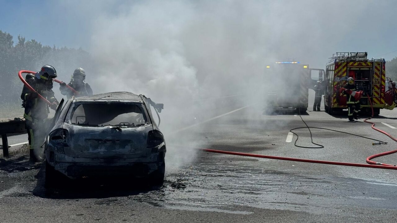 Une automobiliste a percuté un camion. Sous le choc, sa voiture a pris feu !