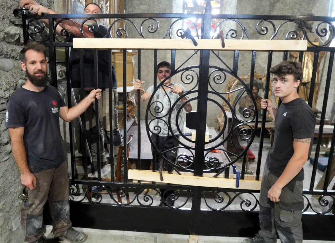 Il aura fallu aux six apprentis et aux deux adultes en reconversion dans la branche métallerie, plus d’une centaine d’heures de travail, pour venir à bout du projet. Aujourd’hui 17 juin, la pose des deux portails monumentaux étaient réalisés. Participaient à cette mise en place les deux formateurs, Nicolas Girou et Jérémy Coustou, et deux apprentis, Ziggy et Lucas.