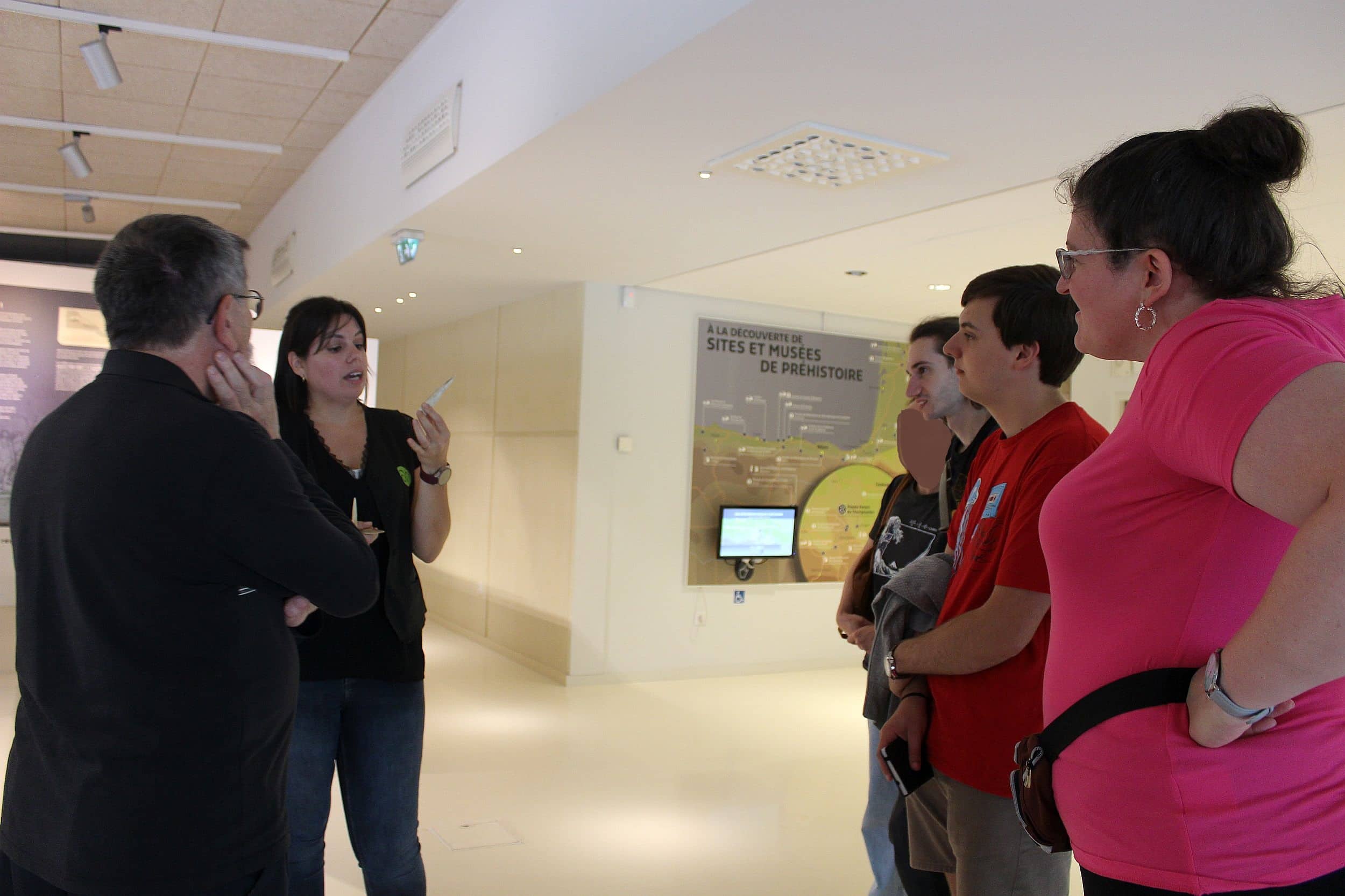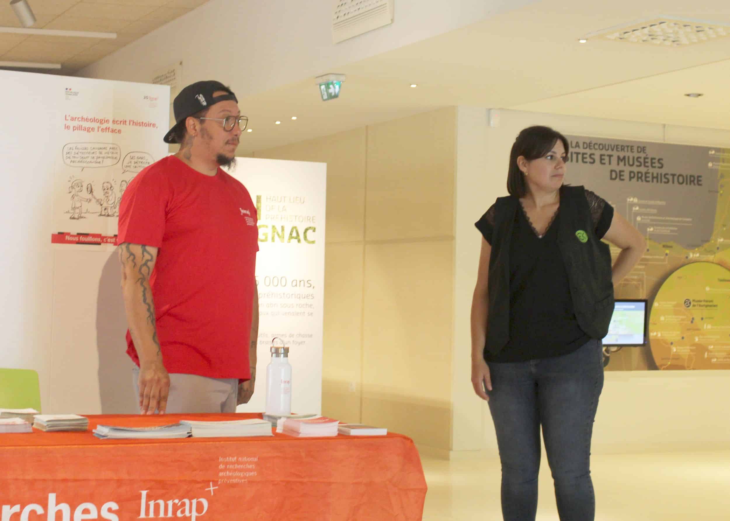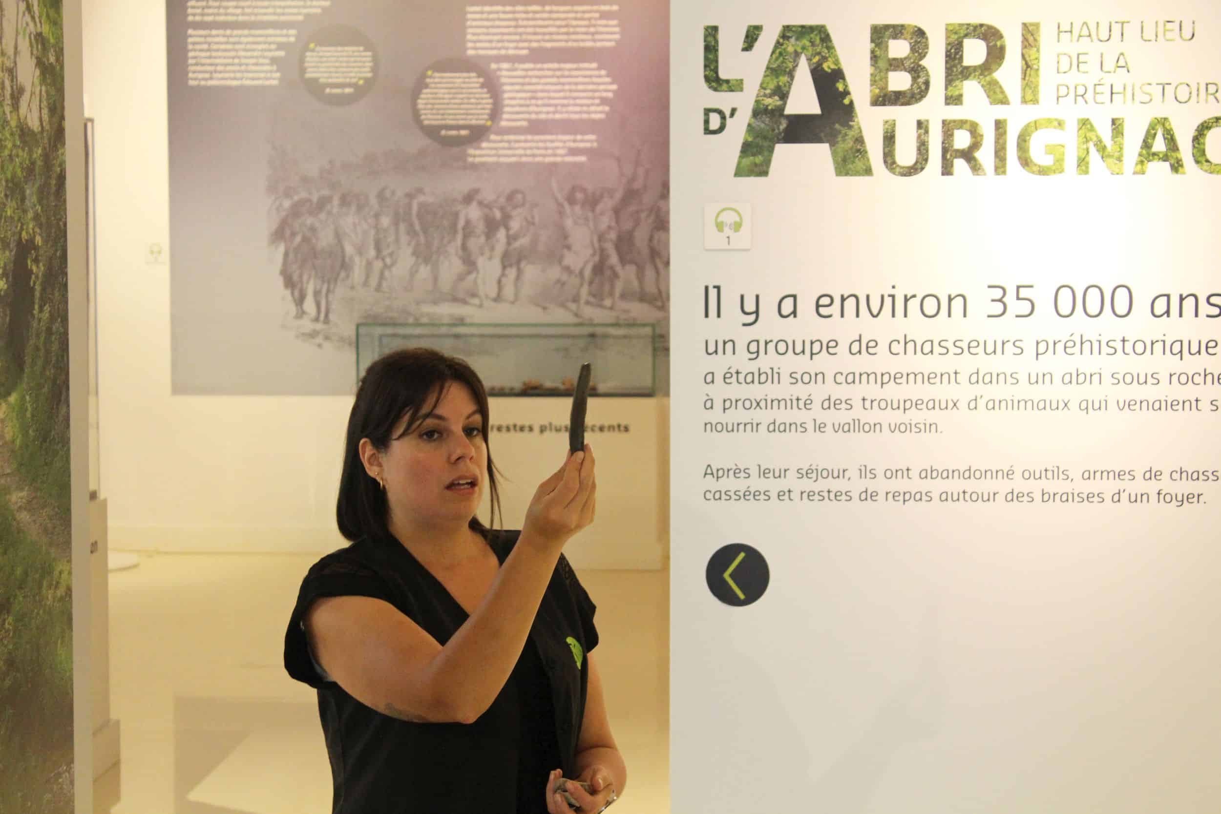 Le public a franchi en nombre les portes grandes ouvertes au Musée de l’Aurignacien le week-end des 14 et 15 juin, à l’occasion des Journées européennes de l’archéologie. Un programme riche et gratuit, avec des visites guidées, avec un atelier de carpologie, une séance théâtrale avec des collégiens, une conférence avec les archéologues de l’INRAP Patrice-Georges Zimmerman et Wilfried Galin. Pour faire découvrir les merveilles qui constituent les collections uniques issues de ce site célèbre dans le monde, Marie était aux commandes avec son chaleureux sourire et son professionnalisme. Elle a expliqué avec les mots qui conviennent à chaque public l’histoire du célèbre abri, éponyme d’une période spécifique de la Préhistoire, l’Aurignacien. Culture du paléolithique supérieur, les peuples de l’Aurignacien ont vécu en Europe et jusqu’au Moyen-Orient, de moins 45 000 ans jusqu’à moins 30 000 ans environ. Découvert par Edouard Lartet en 1860, l’abri a révélé des fossiles humains qui ont écrit le début d’une incroyable aventure, plaçant à jamais la petite bourgade d’Aurignac dans l’immense frise chronologique de l’Humanité.