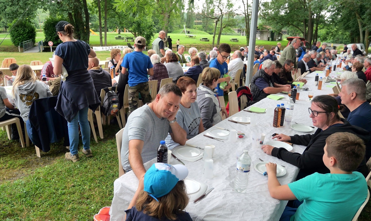 Le repas de midi en plein air réunissait une centaine de personnes, un chiffre qui aurait pu être supérieur si le soleil avait daigné se montrer.