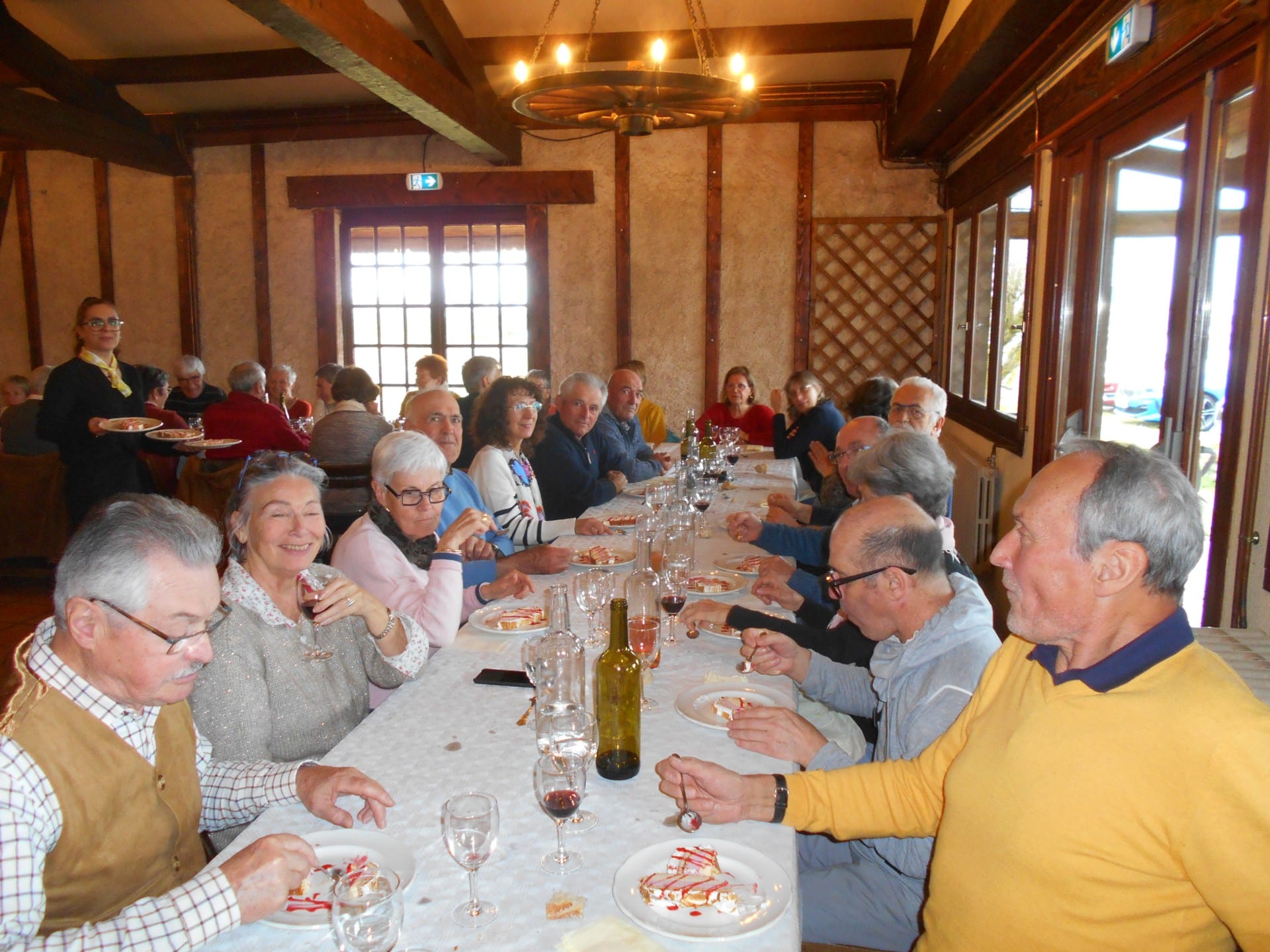 Au menu : entrées diverses apportées par les marcheurs, saucisses de Toulouse et grillades, dessert et café. Le vin ( bu avec parcimonie) était offert par le club.