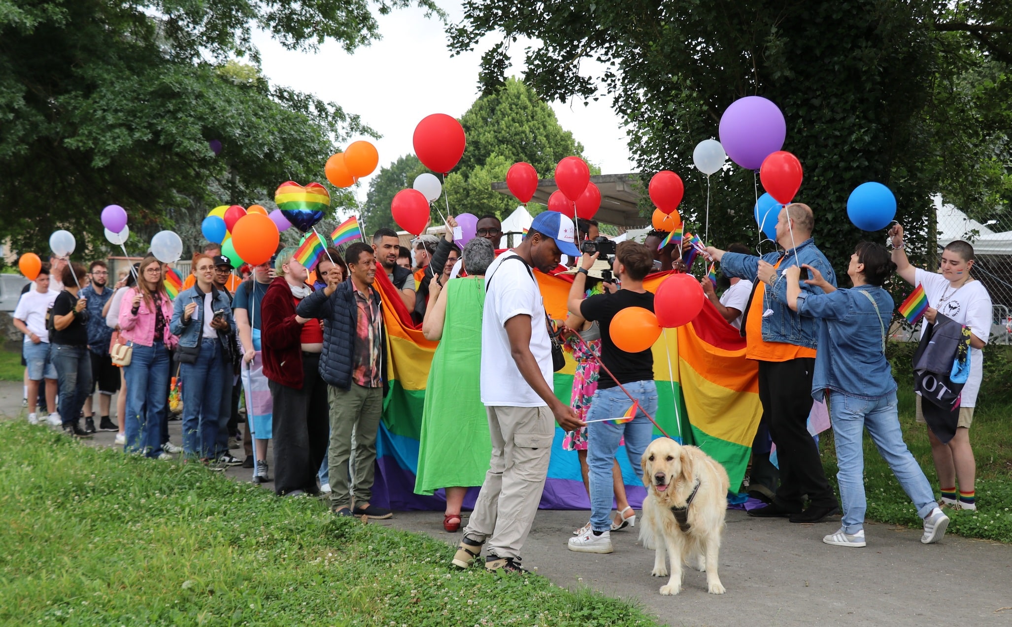 La journée a été véritablement lancée avec le discours de bienvenue à tous, et de remerciements aux soutiens de l’association ACCEPT, par la présidente Françoise Lanfant. Avec, dans la foulée, une marche des fiertés autour du lac de Sède.