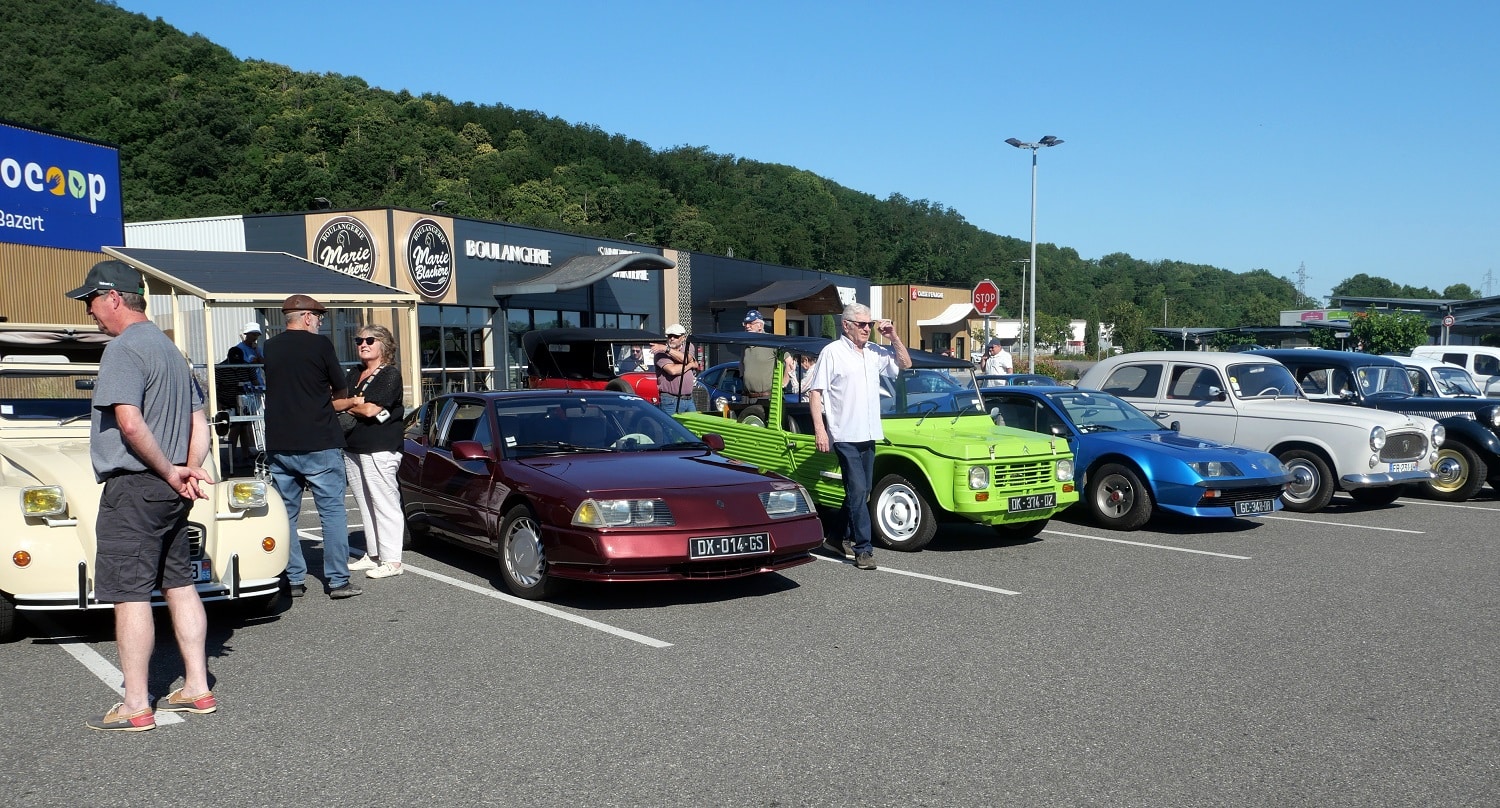 Une jolie Ferrari jaune actuellement à la vente, côtoyait une Alpine et une Renault 8. Maserati, Fiat 124, Peugeot 204 cabriolet, Dyane, Peugeot 403, Panhard, Simca, toutes étaient là.