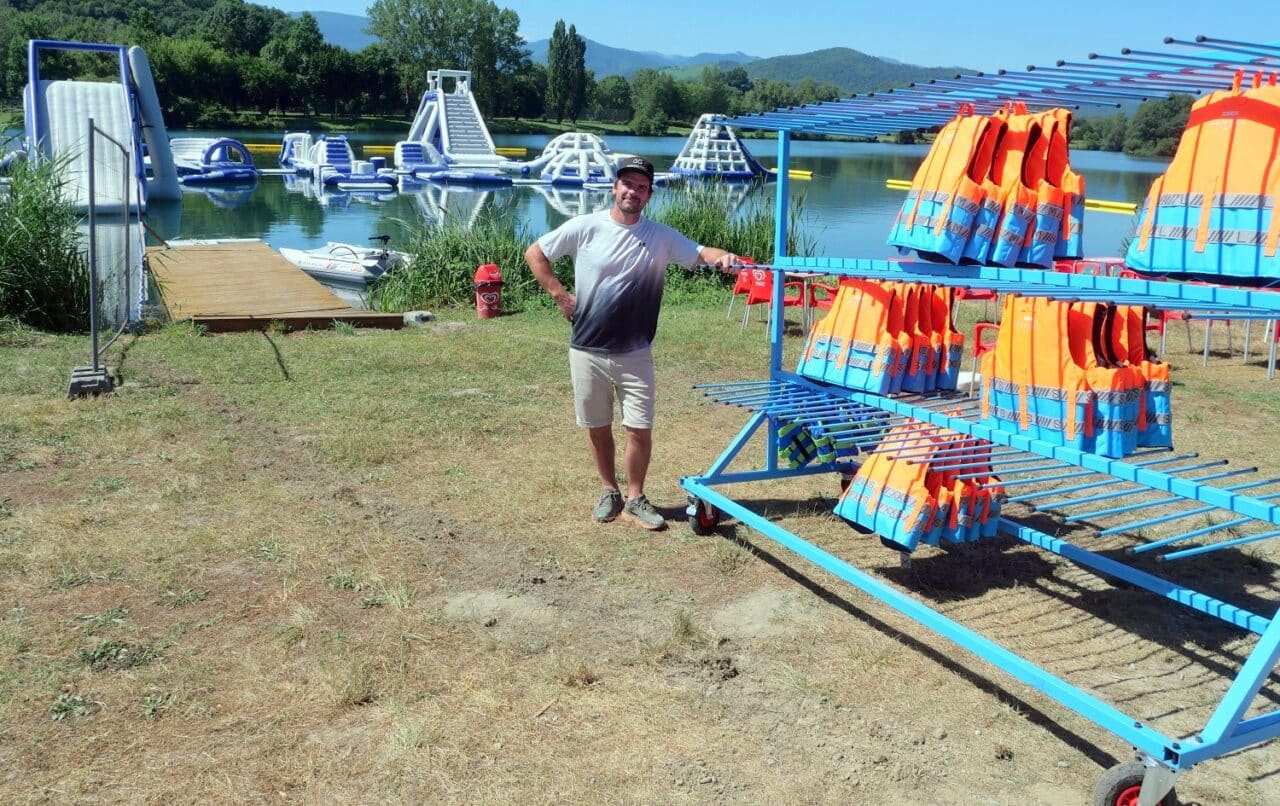 « Nous cherchions un autre lac, à moins de deux heures de Carcassonne, pour nous installer », confie Cyrille. « C’est l’ancien exploitant de l’Aquaparc de Montréjeau qui m’a averti qu’il ne reviendrait pas cette année. Nous avons été séduits par le cadre avec les Pyrénées, les aménagements avec la baignade, les jeux pour enfants, les appareils e remise en forme. Nous avons été très bien accueillis par la municipalité et les services publics. »