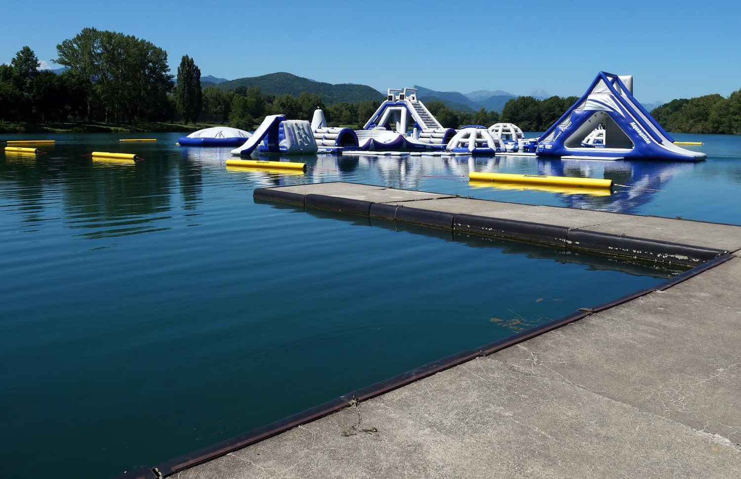 L’Aquaglide de Montréjeau est une structure américaine, pionnière dans ce domaine. C’est un parcours d’obstacles et de franchissement praticable en toute sécurité. Le gilet de sauvetage est obligatoire et fourni par l’entreprise.