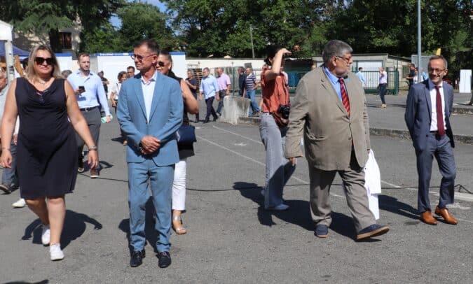 Vendredi 27 juin 2025, Magali Gasto-Oustric (présidente CC Cœur et Coteaux du Comminges), Joël Aviragnet (député), Bernard Bagneris (conseiller départemental), Sébastien Vincini (président conseil départemental).