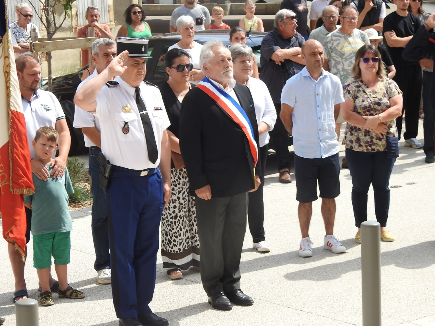 Après ce discours, M.le maire Pierre Lagarrigue et José Serrano le porte drapeau des anciens combattants déposerons les 2 gerbes au pied du monuments aux morts suivi de la minute de silence et de l’hymne national la Marseillaise, c’est ainsi que se termine cette cérémonie.