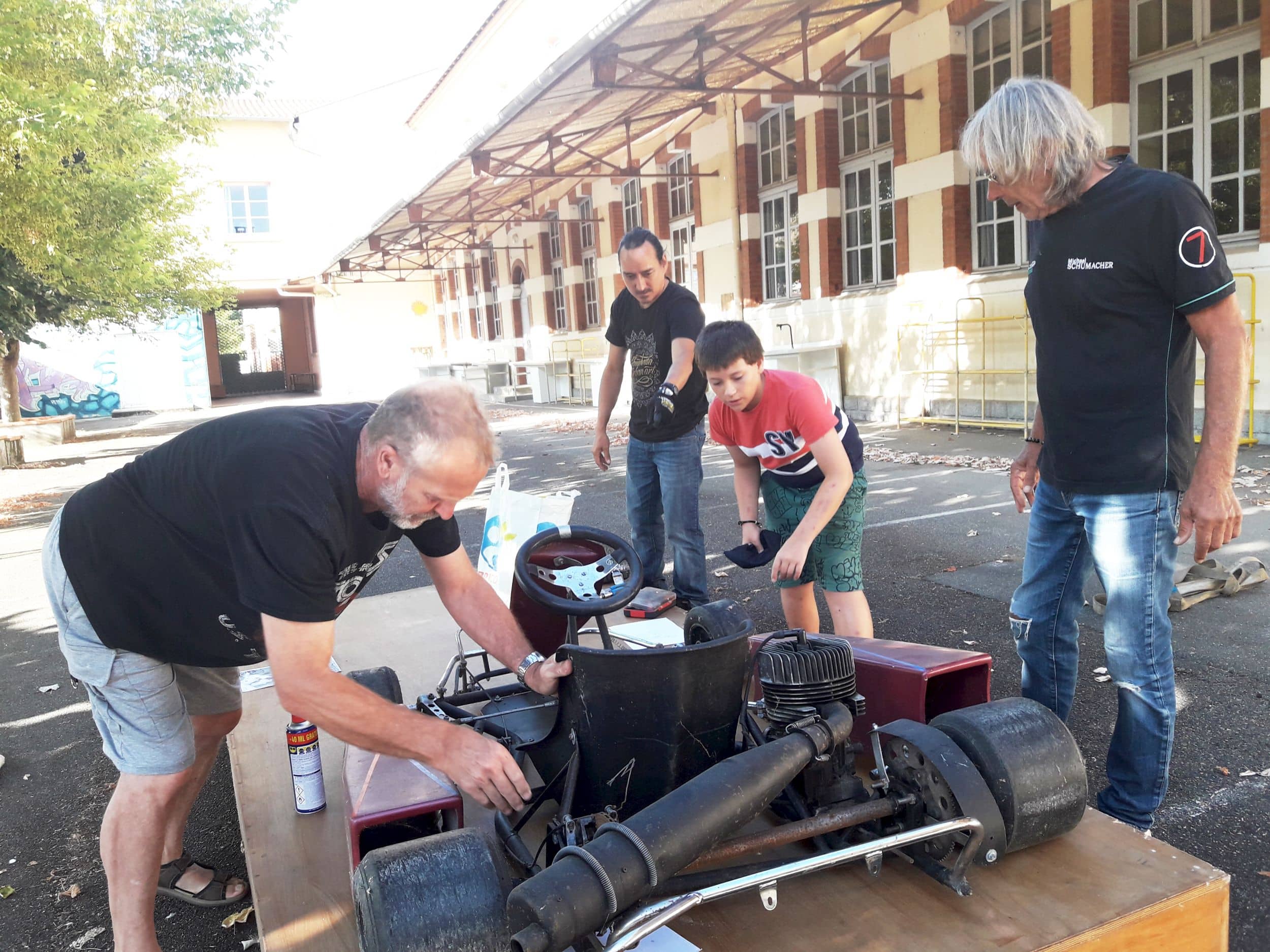 Les mécanos et bricoleurs de talents se rassembleront tous les mercredis matin pour travailler sur la caisse à savon, les jeunes y participeront et pourront fabriquer les décors de façon indépendante, dans les locaux de la MJC. La sécurité étant primordiale, le bolide -qui atteint plus de 50km/h en descente- devra être aux normes, arceaux, freins, parechocs…, les deux conducteurs (un jeune et un animateur) seront bien équipés, casque, vêtements couvrants et bonnes chaussures.
