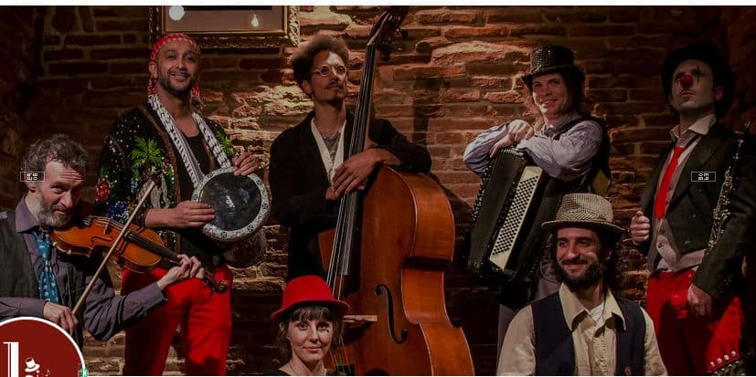 Des mélodies sensibles aux rythmes endiablés, sur les rythmes klezmer ou balkaniques, tsiganes ou manouche. La troupe est joyeuse, loufoque entre surprises et émotion. Ce sont sept artistes qui envoient une énergie hors du commun, 21h30.