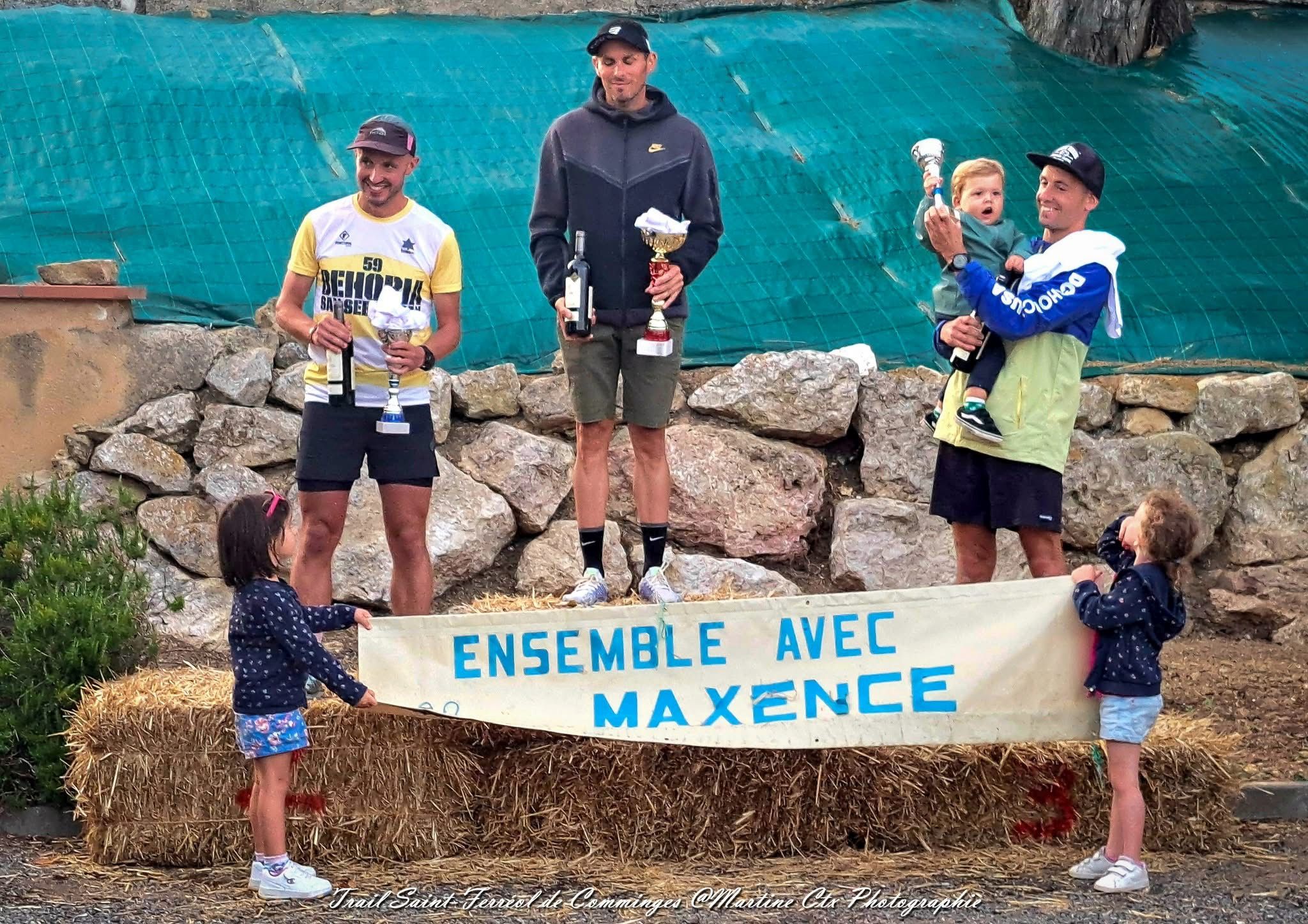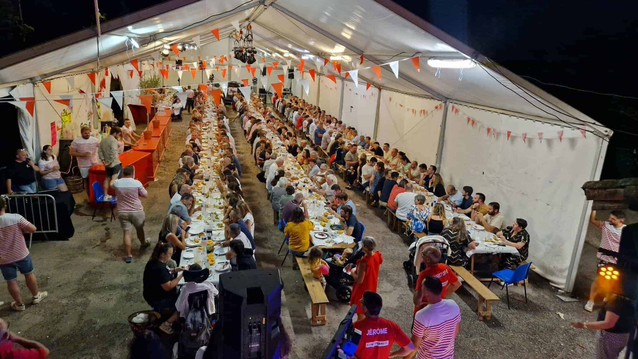 Vendredi soir 25 juillet, c’est donc une cinquantaine de coureurs qui ont pris le départ du trail solidaire, organisé au profit de l’association Ensemble avec Maxence, sur un parcours de 9,5 km dans les coteaux. Une quarantaine de marcheurs de leur côté ont accompli la boucle de 5,5 km. La somme récoltée grâce au trail et la marche, 767,20 €, a été remise à l’association, elle aidera au financement du beau projet du jeune Maxence, participer au grand raid de l’île de la Réunion en 2026, la célèbre Diagonale des Fous. Les parents de Maxence et les amis de l’association ont remercié chaleureusement les membres du Comité pour leur bienveillance, leur engagement et leur générosité. La soirée a rassemblé 150 convives sous le chapiteau pour déguster les tapas au braséro et danser sous les étoiles.