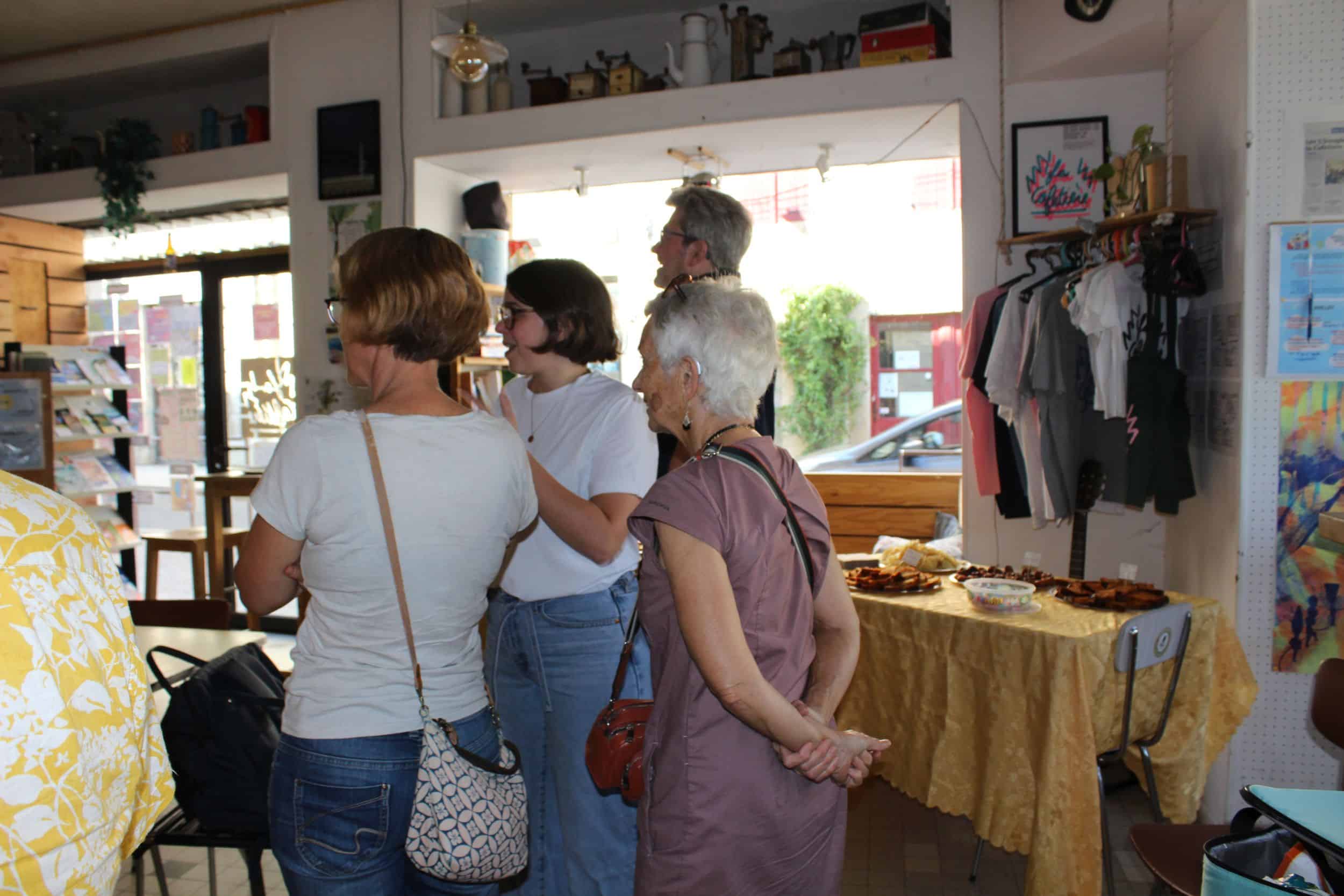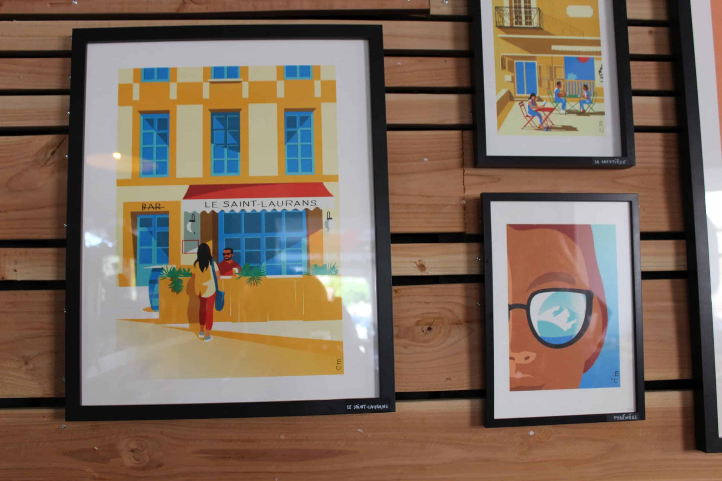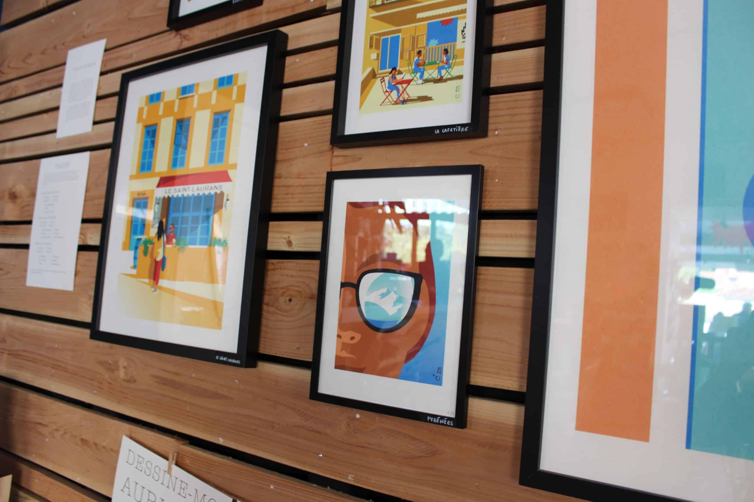 Capucine Moulas utilise une technique digitale pointue pour l’impression, qui prend souligne-t-elle plus de temps que la création proprement dite. Elle travaille avec un imprimeur de talent dans la région toulousaine. « Cette première expérience est grisante, sourit Capucine, échanger avec les visiteurs venus au vernissage, voir mes illustrations au mur de la Cafetière, ce lieu extraordinaire poumon culturel d’Aurignac, c’est formidable et moins intimidant que prévu car ici on se sent vraiment en famille. »
