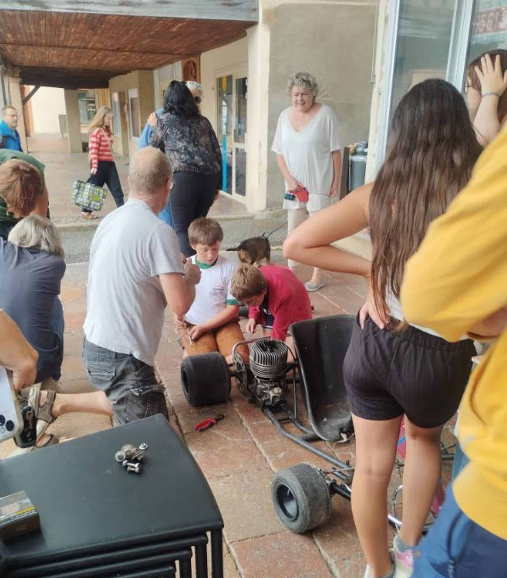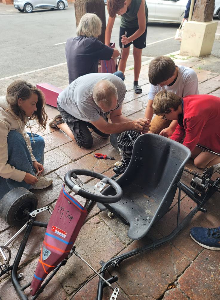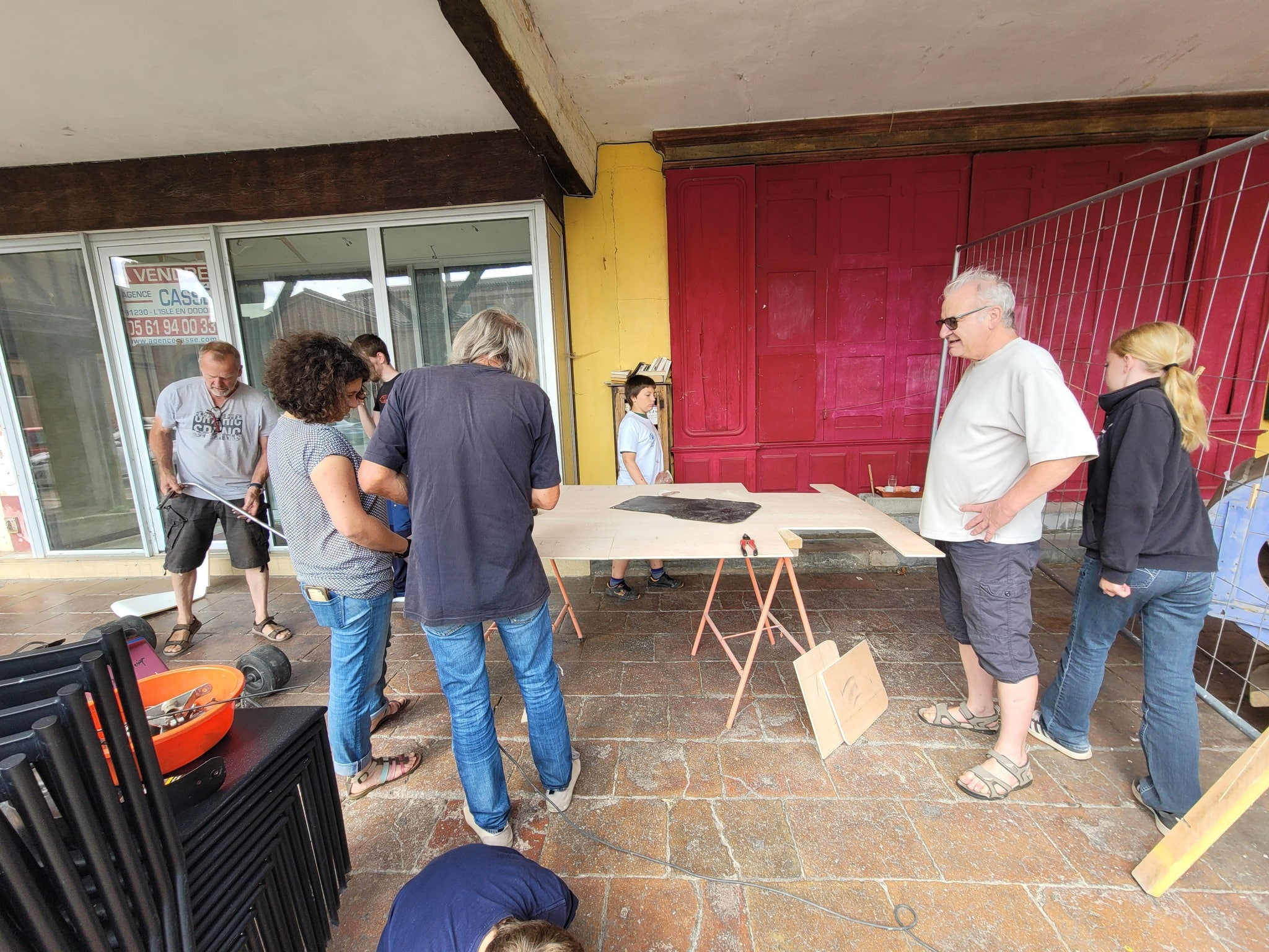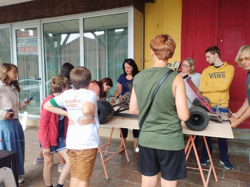 Une fois par semaine devant les locaux de la Maison des Jeunes et de la Culture à L’Isle en Dodon, les passionnés de caisses à savon se réunissent, ados et adultes, pour customiser le petit bolide qui courra sous les couleurs de la MJC le 14 septembre prochain, lors de la grande course de l’association Caisses en Save’on. Toutes les compétences sont mises en commun à l’atelier bricolage, et chacun peut apporter sa touche à la réalisation finale, décoration, mécanique, confort, sécurité… Le thème de la caisse colle à l’ADN de la MJC, sorte de résumé d’une chambre d’ado, avec un lit et l’attirail qui va avec. Les générations se mêlent et se complètent, dans une joyeuse émulation, innovation, originalité, performance, la caisse à savon de la MJC sera évidemment, de l’avis général, la meilleure ! Et tous s’y emploie avec énergie et enthousiasme.