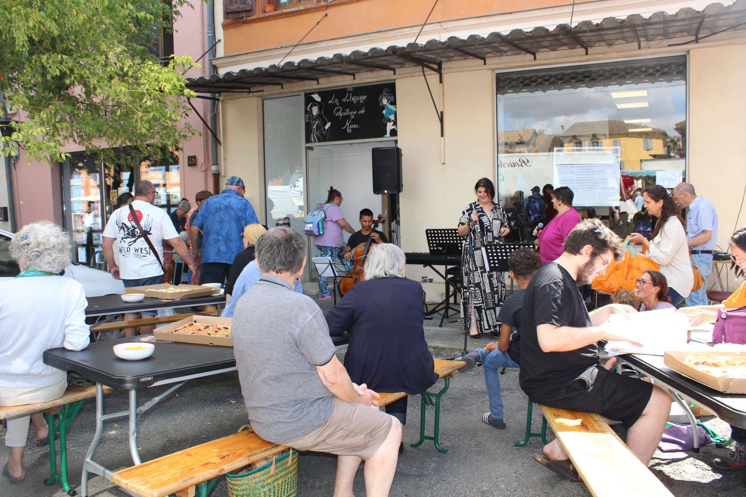 La musique était assurée par les talents locaux pour parfaire cette inauguration chaleureuse, Rémi et Miguel à la guitare, Béatrice, Alice, Lana au chant, Antoine au violoncelle, pendant que les participants se régalaient des pizzas Kannibal en sirotant le verre de l’amitié. « Des soirées musicales seront organisées, ajoute Patricia, ainsi que des rencontres avec des auteurs. » Un beau programme à suivre à la libraire-papèterie de Kiou.