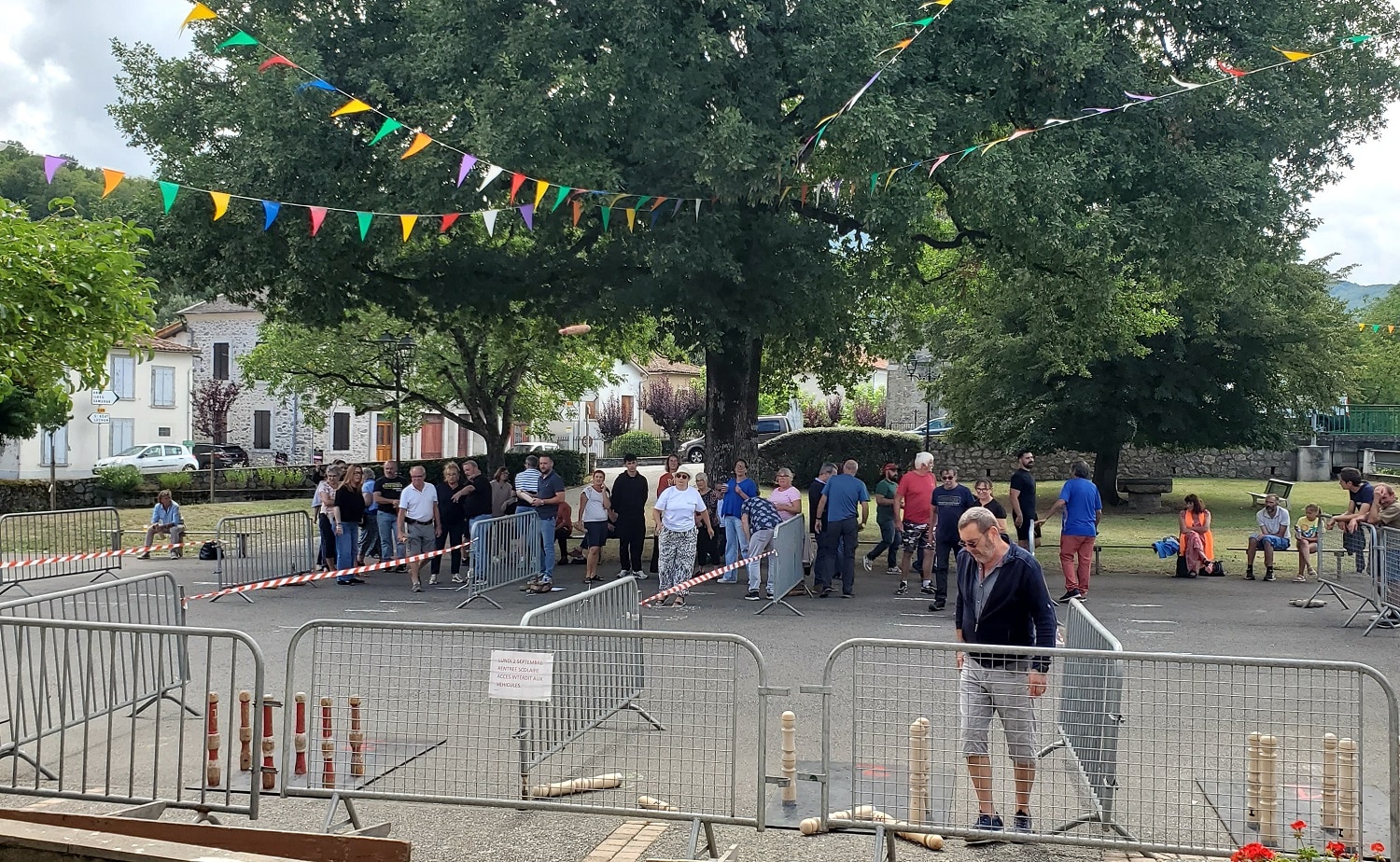 C’est toujours avec autant de plaisir que les Izaourtès accueillaient,  le lundi 28 juillet dernier jour de la fête, les joueurs de quilles au maillet. La place de la mairie était bien remplie. Les joueurs ont eu la joie d’avoir René Marrot à la table du graphique.