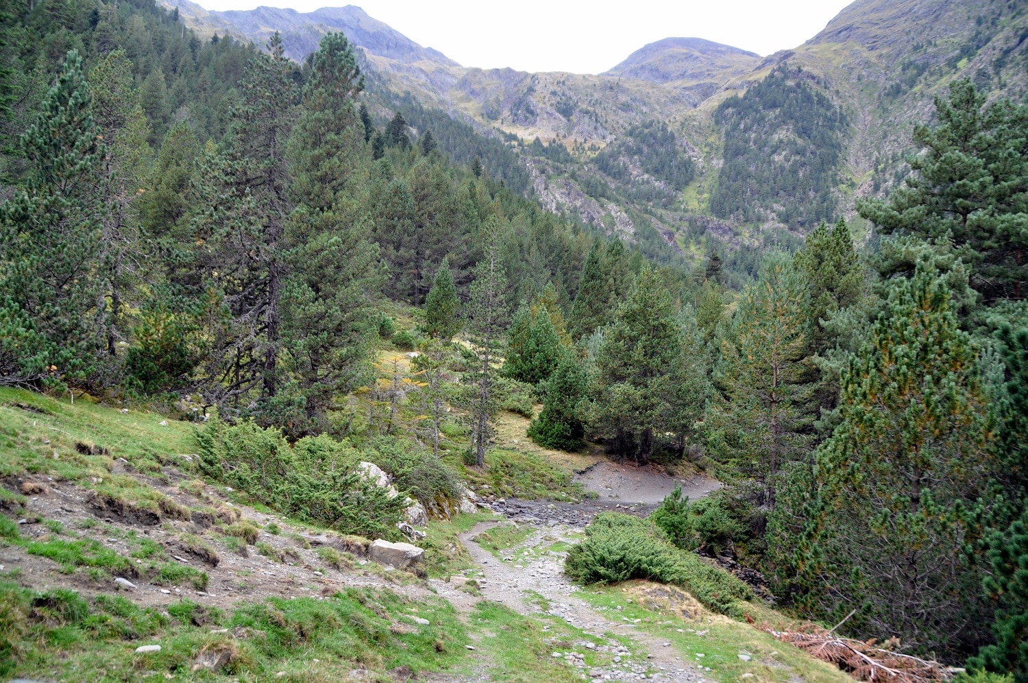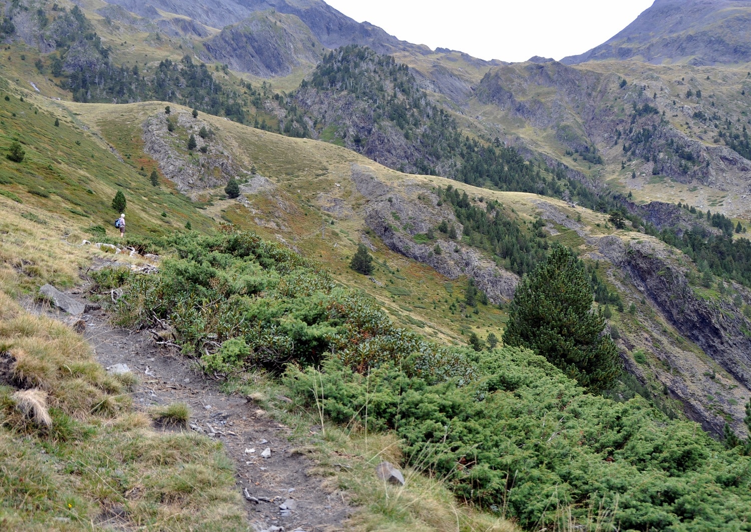 Le sentier, qui s’écarte peu à peu de l’Hospice, grimpe rapidement vers les hauteurs, en alternant les forêts de sapins et les quelques vues dégagées sur l’Hospice qui se trouve alors en contrebas, sur la droite. La montée se fait relativement vite, mais peut être assez « sportive » pour certains, surtout en cas de fortes chaleurs.