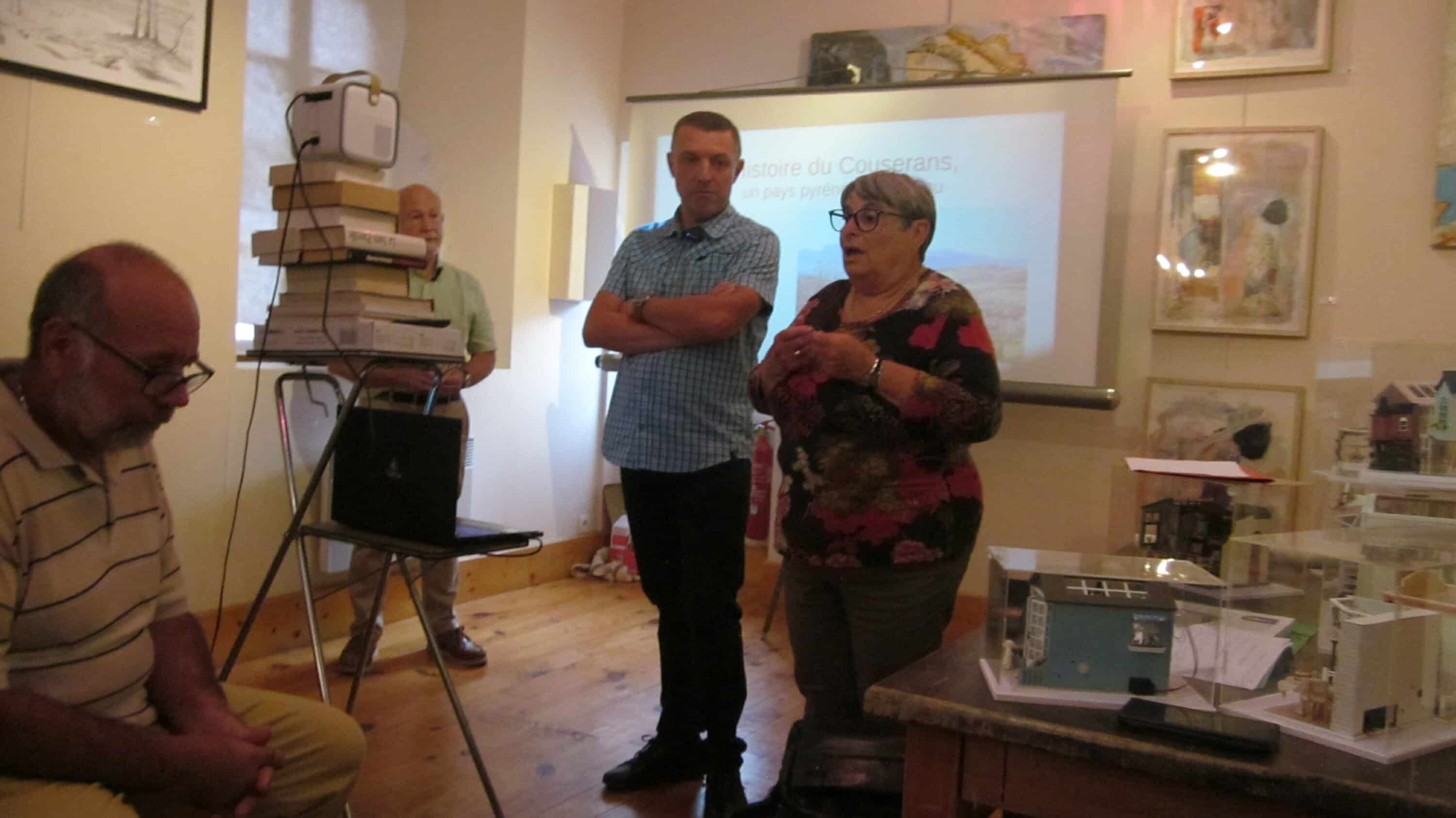 Ce 2 août Madame Marie-France Puntil a rappelé devant une salle pleine, en introduction à la conférence des auteurs de « Histoire du Couserans », l’attention de la municipalité dans l’accueil des opérations de collectage sur le terrain par l’Ostau Comenges. Gérard Tougne Professeur d’histoire et Jean-Paul Ferré Président de « Eth hostau Comengés » ont donné une visibilité pertinente à la singularité de ce territoire gascon entre Comminges et Couserans. La qualité de l’intervention a trouvé dans le public une résonance dans la hauteur des questions avec un public visiblement capté par la densité du propos des intervenants. Les particularités linguistiques des vallées et leurs convergences dans les marchés de plein vent, l’évocation de la visite de l’envoyé du Roi Louis XIV, Louis de Froidour et son regard sur ces contrées de montagnes à l’époque, ce fut les moments forts de la présentation du livre « Histoire du Couserans ».