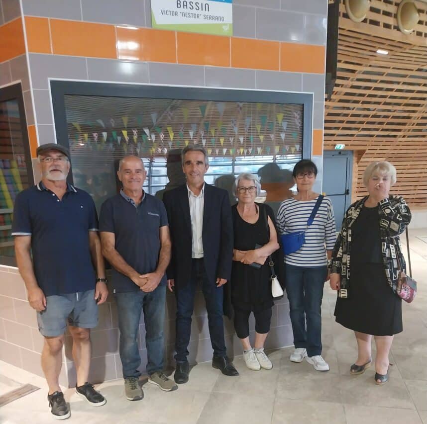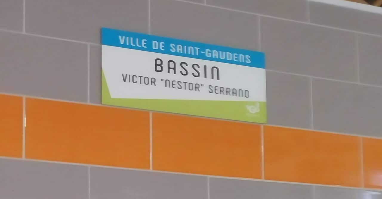 Le mercredi 27 Août le bassin intérieur de la piscine de Saint-Gaudens a été dénommé « Bassin Victor « Nestor » Serrano par Jean-Yves Duclos, Maire de la Ville en présence de Rosyne, la compagne  du regretté Nestor accompagnée des frères et soeurs de Nestor.