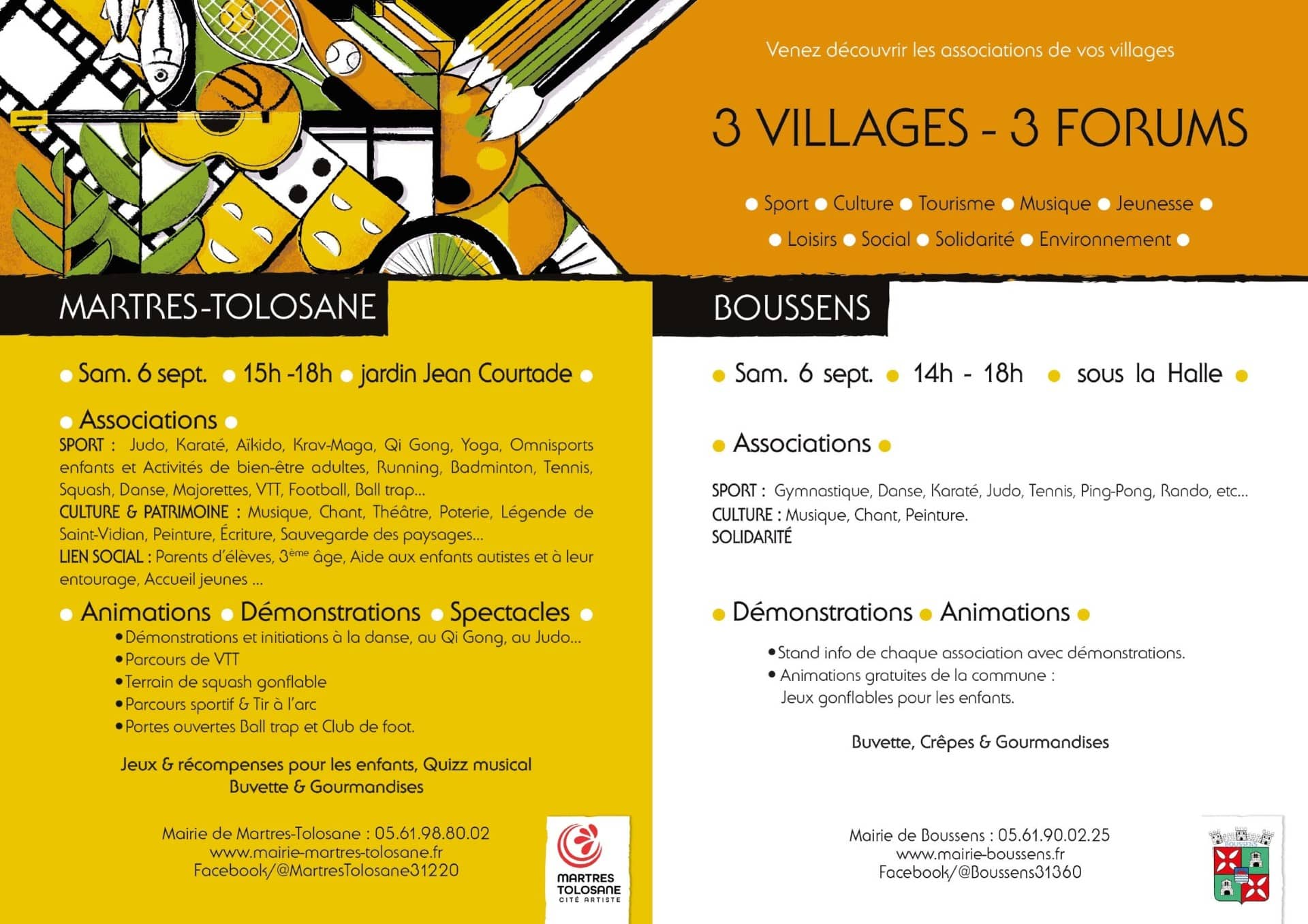 Les communes de Martres-Tolosane, Boussens et Cazères vous attendent nombreuses et nombreux pour ces trois forums qui laissent présager de beaux moments.